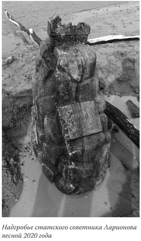 ![]() Татьяна СВИРИДОВА. О чем рассказывает и молчит надгробие статского советника ЛарионоваТатьяна СВИРИДОВА режиссёр видеокомпании «Студия 21», заведующая отделом кинохроники Бердского историко-художественного музея. Исследования территории Старого Бердска начались в конце 90-х годов ХХ века. Уже тогда близ развалин бывшего Сретенского храма посетители этого «музея» на дне моря могли видеть лежащий на боку камень, как говорят очевидцы «похожий на черепашку». При ближайшем рассмотрении становилось понятно, что это надгробный камень в виде горы Голгофы, над которой когда-то возвышался массивный металлический крест, а теперь остался лишь фрагмент основания. Более пытливые, тщательно всматриваясь, могли разобрать и надпись на камне: «Статский советник Ларионов» и дату «1 июня 1903 года». До недавнего времени этого человека не знали ни историки, ни краеведы. Акцент в исследованиях ставился на соседнее захоронение, принадлежавшее известному купцу Владимиру Александровичу Горохову (его останки эксгумировали и перенесли в современный Бердск в 2008 году). Но время пришло весной 2020 года. После 12-летнего перерыва в о ды Обского моря вновь отошли на несколько км, и на суше оказалось церковное кладбище старого храма. Тогда-то и дошло дело до Статского советника. Идея перенести заброшенное надгробье возникло одновременно у нескольких человек. Не сговариваясь заранее – к могиле Ларионова пришли бердчанин иеромонах Владимир (Бирюков), заведующий техническим отделом Сибирского центра колокольного искусства Виктор Васильев, дьякон при храме Рождества Пресвятой Богородицы (Новосибирск) Максим Холькин. Для начала опрокинутый камень подняли с помощью автомобильного домкрата и поставили его в вертикальное положение. Теперь стало проще работать с надписью и ушло то щемящее чувство, которое невольно возникает, глядя на упавшие памятники, разрушенную архитектуру и иные картины разрухи. А далее стали думать, как осуществить перенос. К этому времени другие надгробные плиты, включая целые и осколочные фрагменты, уже были перенесены для хранения на территорию Преображенского храма в современном Бердске. Благодаря иеромонаху Владимиру (Бирюкову) там образовался своеобразный музей кенотафов (кенотаф – в переводе с древнегреческого «пустая могила», то есть не содержащая останков – прим. автора). Времени для переноса в эти же дни было очень мало: вода подступала быстро, а технических вопросов требовалось решить не один и не два. Поэтому на «Голгофе» зафиксировали специальный крепёж, за который уже летом по большой воде запланировали поднять и доставить надгробье в Бердск. А тем временем началась исследовательская работа, которую инициировал заместитель руководителя Сибирского центра колокольного искусства Новосибирской митрополии Алексей Талашкин. Несмотря на разгар ограничений из-за пандемии и невозможность работать в архивах, Алексею уже за первые две недели удалось разыскать документы, которые рассказывают нам о Статском советнике Ларионове и его деятельности в Сибири. Результаты исследования не претендуют на завершённость, однако уже известно немало, и мы имеем вполне очерченный образ. Николай Михайлович Ларионов родился 11 ноября 1861 года. Место рождения неизвестно. В 1881 году окончил Петербургский учительский институт и сразу на