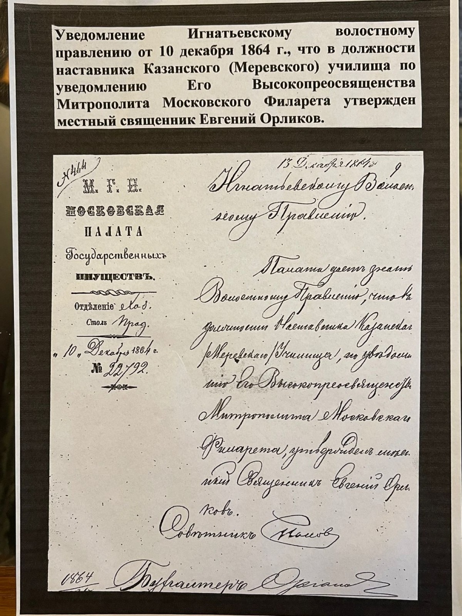 – Она существовала уже в 1864 году. Мы знаем это доподлинно, потому что сохранилась грамота о назначении в нее инспектором и законоучителем священника Евгения Орленкова. Документ хранится в нашем приходском музее. 135 лет назад было построено отдельное школьное здание, которое сейчас поставлено на государственный учет, как обладающее признаками объекта культурного наследия. Инициатором строительства выступила Юлия Михайловна Савельева – для нас легендарная личность. Она была дворянкой, дочерью высокопоставленного генерала, лично знакомого российскому императору. Родовое имение семьи Савельевых располагалось в Тульской губернии, неподалеку от Ясной Поляны. У Юлии Михайловны было три сестры и брат. Изначально, имея домашнее образование, вместе с одной из сестер она окончила учительские курсы, потом, уже одна, получила также начальное агрономическое и фельдшерское образование. По зову сердца эта молодая женщина приехала в наше село учить детей. Увидев, что учащиеся есть, но нет помещения, она вместе с местным священником отцом Василием Виноградовым привлекла земство и купцов для строительства школьного здания. Школа была церковно-приходской? – Нет. Это была частная школа, содержавшаяся священником Виноградовым. В 1887 году она перешла в ведение земства и была преобразована в четырехклассное земское Казанское народное училище. В каждом классе насчитывалось до 30 учеников. Классы были смешанными и число учеников все время возрастало. Позже к первоначальному зданию училища была сделана пристройка для увеличения вместимости классов. Храм был построен гораздо раньше, в 1860 году. История такова: в 1812 году, когда шла война с Наполеоном, здешним крестьянам-ополченцам была чудесно явлена Казанская икона Божией Матери, несомая двумя ангелами. После разгрома корпуса маршала Нея, который действовал в Богородском уезде, икону принесли к нам в село. Она долго хранилась в доме одного из местных жителей. В 50-е годы XIX века в Богородском уезде разразилась моровая язва. Тогда Казанскую икону принесли на источник, с незапамятных времен бьющий в окрестностях. Там отслужили молебен перед чудотворным образом и затем обошли с ним село. Моровая язва прекратилась. В 1858 году на крестьянском сходе было принято решение построить церковь в честь Казанской иконы Божией Матери и поставить там святыню. Когда митрополит Московский и Коломенский святитель Филарет ехал мимо нас по Владимирскому тракту, крестьяне остановили его и подали прошение о дозволении строить храм. Он дал свое благословение, причем, удивив всех, повелел начать стройку не в центре села, а за судоходной рекой Вохонкой, на другом, нежилом берегу. Люди были озадачены, но послушались. Стройматериалы на лодках и плотах переправляли через реку. Потом сделали мост, но довольно хлипкий, так, что его уносило при каждом половодье. В марте 1864 года село Меря по посвящению новой церкви было переименовано в село Казанское. Замысел святителя Филарета оказался прозорливым: удаленность храма позволила в 30-е годы спасти его от разорения. Помогло еще и то, что две обретавшиеся при храме монахини Агафия и Ольга из закрытого Покровского Васильевского монастыря Павлова Посада, прослышав об угрозе закрытия, взяли церковные ключи и зимой ушли в лес. Мороз стоял сорокаградусный, они жили фактически в снегу, 