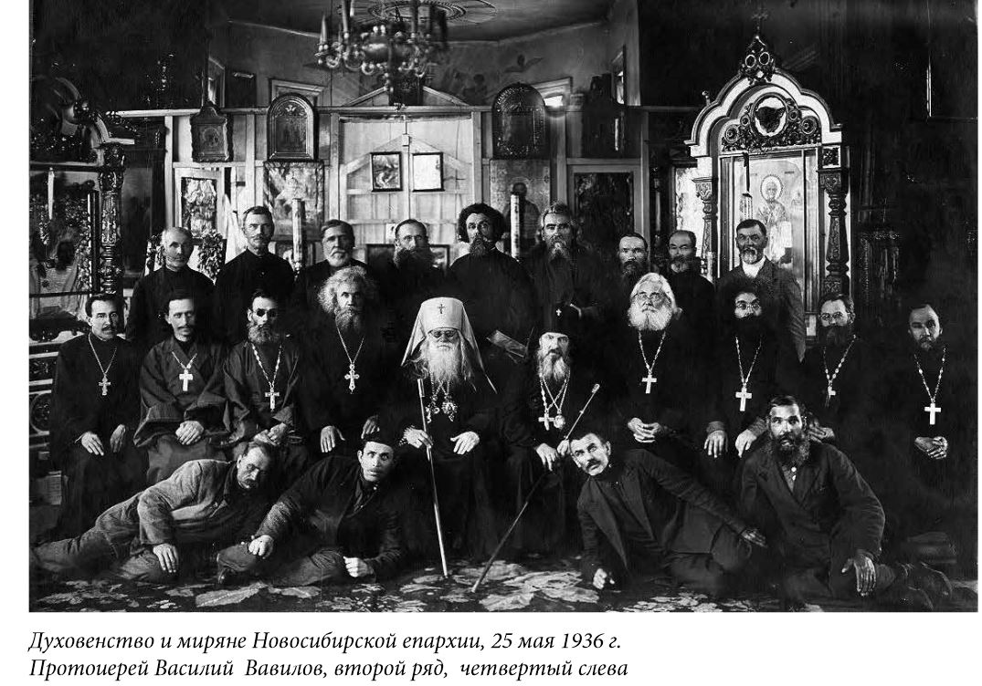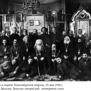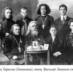 Дочери о. Василия Агния и Нина Послужной список отца Василия Ливанова: 1 сентября 1911 года – окончил курс Колыванской второклассной учительской школы, назначен учителем церковно-приходской школы в селе Вьюнском Томского уезда Томской губернии (ныне село Вьюны Колыванского района Новосибирской области); 25 марта 1914 года – рукоположён в сан диакона Троицкой церкви села Вьюнского [25] ; 9 марта 1919 года – рукоположён в сан священника, с назначением в Михаило-Архангельскую церковь села Тропинского [26] . Василий Алексеевич Ливанов происходил из семьи потомственных священнослужителей. Отец его – единоверческий (единоверие есть примирённое с Русской и Вселенской Церковью старообрядчество – авт. ) протоиерей Алексий Леонтьевич Ливанов и три брата отца были священнослужителями в Томской области. Отец служил в Троицкой единоверческой церкви города Томска, умер в 1912 году. Мать – Анна Ивановна Ливанова, родилась в 1848 году. У отца Алексия было восемь сыновей и две дочери, шестеро из сыновей стали священниками. Родные братья священника Василия Ливанова: · Иван (епископ Тарасий, родился в 1877 году, расстрелян в 1933 году); · Иннокентий (архимандрит Иосиф, расстрелян в 1937 году); · Алексий, протоиерей (расстрелян в 1933 году); · Андрей, протоиерей ( родился в 1862 году, расстрелян); · Константин, иерей (расстрелян); · Валентин (работал бухгалтером в Москве); · Вениамин (работал ветеринарным врачом в Курске). Братья Вениамин и Валентин погибли во время Великой Отечественной войны. Двое детей епископа Тарасия, Алексей и Александр, были расстреляны. Всего в семействе Ливановых было репрессировано 18 человек [27] . Отец Василий Ливанов прослужил в Михаило-Архангельской церкви совсем недолго, чуть более года. В июле 1920 года все окрестные сёла города Колывани были охвачены Колыванским вооружённым восстанием против большевиков. Повстанческое движение началось 5 июля 1920 года в селе Вьюнском [29] . Но уже 12 июля восточный отряд сводной группы войск Красной армии наступал с юга на север на сёла Тропино и Паутово, наперерез отступавшим повстанцам, бегущим в направлении этих сёл [30] . В своих задокументированных воспоминаниях очевидец тех событий житель села Тропинского А.И. Пермяков указал, что бойцам Красной армии удалось схватить некоторых повстанцев: Субботина С., Потеряева И., Потеряева П., Бирюлина А., Пермякова И., Поротникова К. и др., а вместе с ними и священника Василия Ливанова. Пленников расстреляли в селе [31] . Точнее, согласно рассказам свидетелей тех событий, повстанцев казнили в овраге у реки Федоска. На спутниковом изображении карты Google это место отмечено указателем, приведены координаты: