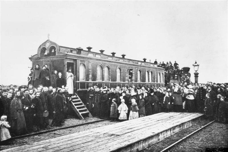 История необычного храма (вагон-церковь)Вот уже более десяти лет по Новосибирской области в составе поезда «За духовное возрождение России» ездит вагон-храм во имя святителя Николая Мирликийского. Но мало кому известно, что такой храм существовал в Томской епархии до 1917 г. И был освящён во имя равноапостольной княгини Ольги. Обратимся к историческим документам. В одной из книг, посвященных Транссибирской железнодорожной магистрали, так описывался этот вагон-храм. Вагон-церковь сооружен на Путиловском железоделательном заводе в С.-Петербурге, в ознаменование рождения ЕЯ ИМПЕРАТОРСКОГО ВЫСОЧЕСТВА Великой Княжны Ольги Николаевны. К сооружению вагона церкви было преступлено по ВЫСОЧАЙШЕМ разрешении, последовавшим на доклад г-на Министра путей сообщения 14 Ноября 1895 года, в день святого крещения великой княжны. Освящение церкви последовало 11 июля 1896 г. в Новом Петергофе. Снаружи вагон окрашен синим лаком с резной позолоченной отделкой из желтого тика-дерева, неподдающегося гниению и влиянию пагоды. Над входом устроена звонница, увенчанная крестом с тремя колоколами, к колокольне поднимается большая железная лестница с платформы. Внутренняя отделка церкви, стоимостью в 20 000 руб., устроена и пожертвована в память рождения великой Княжны Ольги Николаевны Путиловским заводом, а самый вагон для церкви, наружная отделка его, стоимостью в 10 000 руб., устроенная тем же заводом, пожертвованы управлением Сибирской ж. д. Общая стоимость вагона-церкви равна, таким образом, 30 000 руб. Вагон-церковь имеет прямым своим назначением облегчить выполнение религиозных обязанностей лицам, живущих на станциях Сибирской ж. д., расположенных вдали от селений. Вагон-церковь передвигается между станциями Челябинск и Кривощеково Западно-Сибирской ж. д., а затем, когда по линии этой дороги будут выстроены постоянные храмы, он будет обращаться между станциями Средне-Сибирской ж. д. Внутри вагон-церковь обшита лакированным буком с резьбою наверху, стены с выжженным орнаментом на филенках. Отделка храма внутри проведена по рисункам художника Е. Е. Фон-Баумгартена. В вагоне-церкве 18 окон, по 9 на каждой стороне и 4 одностворчатых двери. При входе в церковь с правой стороны находится отделение со шкафом для ризницы и утвари, с левой стороны такое же отделение для порового отопления вагона-церкви. Убранство церкви вообще роскошно и красиво. Особенно выдается дубовый иконостас, украшенный богатою резьбою и отличающийся необыкновенной легкостью и тонкостью работы. На царских вратах помещены иконы Благовещения Пресвятой Богородицы и снизу - четырех евангелистов в один ряд, над царскими вратами - Тайная Вечеря, а выше, в плафоне - резные изображения Святого Духа, кресты и символы Ветхого и Нового Заветов. Местные иконы расположены по сторонам царских врат одна против другой: с правой стороны икона Воскресения Христова, с левой - Покрова Богородицы, на северной стороне изображение святых Иоанна Предтечи и Архидиакона Стефана, на южной, святителя Иннокентия Иркутского и преподобного Сергия; ниже солеи, у правой стороны, помещаются иконы святых: блаженной княгини Ольги и царицы Александры, у левой святителя Николая Чудотворца и св. Благоверного князя Александра Невского. Алтарь, небольших размеров, но со всевозможными приспособлениями для церковной утвари и ризниц