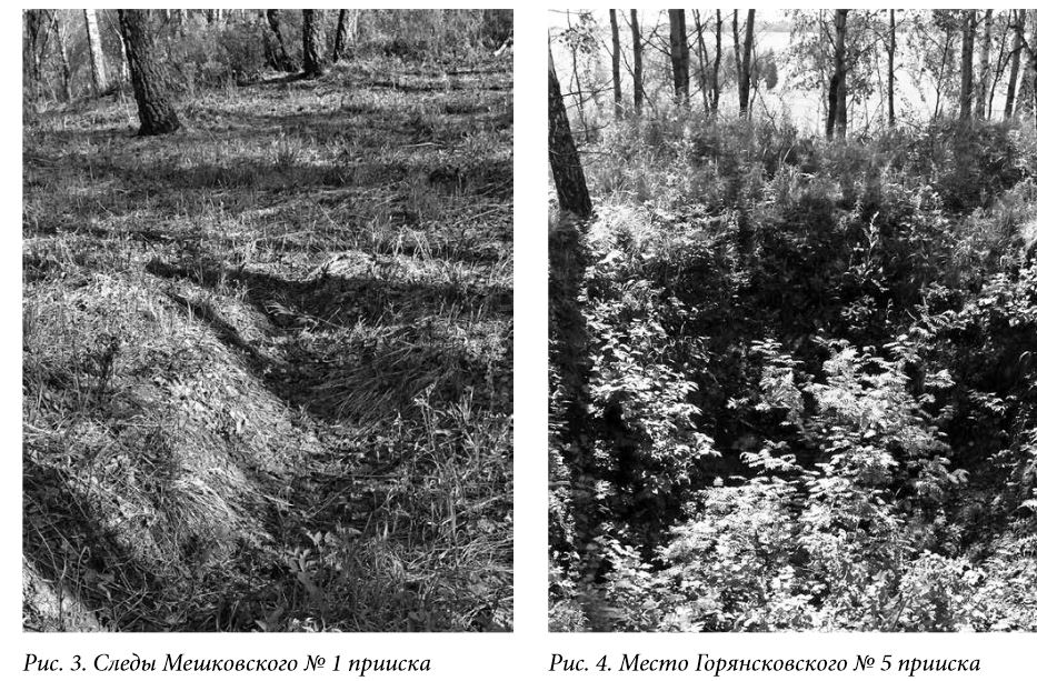В результате обследования определенных по архивным данным мест тринадцати приисков XVIII-XIX веков обнаружено девять старых выработок различной степени сохранности. В окрестностях четырех ненайденных выявлено «большое количество старых заросших выработок – канав и шурфов». На местности обнаруженные объекты представляют собой различного рода изменения естественного ландшафта: от горизонтального забоя глубиной 12.5 м и сечением 2.3 х 4.5 м («Гуляевский прииск», он же «Светляковский рудник») до вышеупомянутых заросших канав и шурфов. В более поздние времена искитимские и маслянинские старые прииски, несмотря на их историческую ценность, упоминались только в геологических изданиях – в частности, в Объяснительных записках к государственным геологическим картам Российской Федерации (ГГК РФ) листов N-45-XIII ( https://clck.ru/33dynH ) и N-44-XVIII ( https://clck.ru/33dyqR) второго издания (2015 год). При этом ряд приисков нанесен на сами карты, а Гуляевский прииск № 1, он же Светляковский рудник, включен в «Каталог памятников природы, показанных на листе N-45-XIII» с комментарием «"Гуляевский прииск" (Светляковский рудник), штольня, в которой добывалась медь в 1814–1826 гг., за этот период добыто 31,4 т руды». Автором, в предположении, что следы отдельных вышеупомянуых приисков могут сохраниться на местности до настоящего времени, представляя определенную историческую и культурную значимость, течение 2021-2022 гг был проведен комплекс архивных, камеральных и полевых работ с целью обнаружения мест старых выработок (без поиска возможных артефактов). По информации, представленной в труде В. Мамонтова [3], в первой четверти XIX века были составлены планы наиболее значимых приисков – в частности, Гуляевского (Светляковского), Гуляевского № 2 и Слатинского. Местом нахождения документов назван Горный отдел архива Алтайского округа, фонды которого со временем вошли в Государственный архив Алтайского края (ГААК). Во взаимодействии с ГААК было установлено современное расположение планов старых приисков – фонд 50 «Чертежная Алтайского губернского управления земледелия и государственных имуществ», опись 18. Полученные электронные копии документов не содержали дополнительных указаний на места их расположения, однако дали понимание масштабов разработок. Так, один из «прорезов» Слатинского прииска имел «в длину до 5, ширину двух, глубину до 2х сажен и 3/4 аршина». В переводе на современные единицы счисления «прорез» был более десяти метров длиной и четырех – в глубину и ширину. Планы Гуляевского (Светляковского) и Слатинского приисков составлялись ежегодно, с 1814 по 1816 годы и 1814-1815 годы соответственно, – в годы наиболее интенсивной их эксплуатации. Отдельного внимания заслуживает начало описания Гуляевского (Светляковского) прииска на плане 1814 года: «Прорез, или лучше сказать Орт, пройденный в преждние времена по рудным жилам...». Эта фраза подтверждает информацию В. Мамонтова о том, что прииск «в давних еще годах объявлен Легостаевской волости деревни Дятловой крестьянином Радионом Алексеевым Гуляевым, прозывавшимся Светляком», а в 1814 году был только «отведен для разработки меховым подмастерьем Маркелом Гуляевым». В результате камеральных работ с использованием данных о местах расположения приисков [3, 4, 5] и государственных геологических карт Российской Федерации (листы N-45-XIII, N-44-XVIII) был