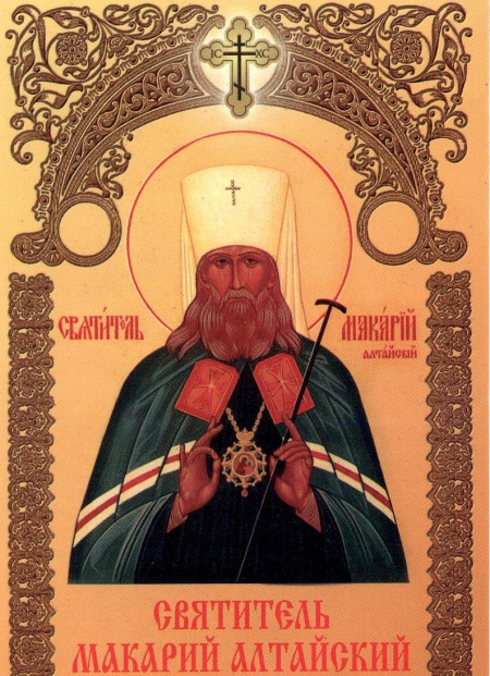 Преосвященный Макарий, (Михаил Андреевич Невский)СИБИРСКИЕ АРХИЕРЕИ.ТОМСКАЯ ЕПАРХИЯ МАКАРИЙ (НЕВСКИЙ), Преосвященный Макарий, (Михаил Андреевич Невский), родился 1 октября 1835 г. в селе Шапкино Ковровского уезда Владимирской губернии в семье причетника сельского храма. Восьмилетним ребенком вместе с родителями, братьями и сестрами он оказался в Сибири, где отец стал служить пономарем в селе Верх-Ануйском на Алтае. Окончив семинарию в 1854 г., он 22 февраля 1855 г. поступил на службу в Алтайскую духовную миссию. В первые годы исполнял обязанности чтеца, преподавал в катехизаторской школе, сопровождал миссионеров в их поездках в самые дикие и труднодоступные места Горного Алтая. 16 марта 1861 г. был пострижен в монашество с именем Макарий, 17 марта был рукоположен в иеродиакона, а 19 марта - в иеромонаха. 14 ноября 1864 г. Макарий был назначен наместником чулышманского Благовещенского монастыря. Весь свой досуг иеромонах Макарий посвящал переводу богослужебных книг на алтайский язык Чтобы добиться издания своих переводов, он в 1864 г. отправился в Санкт-Петербург, где познакомился с языковедом, знатоком тюркских языков Н.И.Ильминскнм, создавшим систему «просвещения инородцев с помощью их языков и соплеменных им учителей». По личной просьбе Н.И.Ильминского в июле 1868 г. иеромонах Макарий был командирован в Казань и в течение полтора лет занимался работой по пересмотру, исправлению и изданию грамматики алтайского языка. Изданная в 1869 г. грамматика, по мнению специалистов, и ныне входит в золотой фонд мировой тюркологии. Его перу принадлежит также первая азбука для алтайцев и несколько других книг (в основном богослужебных) на алтайском языке. Один из современников иеромонаха Макария писал: «Целая литература на неизвестном прежде наречии явилась исключительно его трудами». В Казани на Пасху 1869 г. иеромонах Макарий совершил первую литургию на татарском языке и тем положил начало православному богослужению на языках местных народов. В начале зимы 1869/70 г. он отбыл на Алтай, там 29 июля 1871 г. был возведен в сан игумена. 13 марта 1875 г. был определен помощником начальника миссии, 29 июня 1883 г. возведен в сан архимандрита, а 29 декабря назначен начальником Алтайской миссии. Святитель Макарий Алтайский. Икона XX в. 12 февраля 1884 года Преосвященный Владимир, епископ Томский и Семипалатинский, хиротонисал архимандрита Макария во епископа Бийского, викария Томской епархии с оставлением в должности начальника Алтайской миссии. 26 мая 1891 года Преосвященный Макарий был назначен епископом Томским и Семипалатинским. С образованием в 1895 г. самостоятельной Омской епархии, куда вошла Семипалатинская область, Преосвященный Макарий стал именоваться епископом Томским и Барнаульским. Высочайшим указом на имя Святейшего синода от 6 мая 1906 года Преосвященный Макарий был возведен в сан архиепископа. Под управлением владыки число церквей в Томской епархии так возросло, что пришлось ходатайствовать перед Святейшим синодом о назначении второго викарного епископа. В 1908 г. введена должность епископа Барнаульского, викария Томской епархии, после чего Преосвященный Макарий стал именоваться архиепископом Томским и Алтайским. Владыка широко развернул работу по созданию новых приходов, открытию духовных учебных заведений и других учреждений. За первые 18 лет управления и епархией,