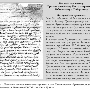 ![]() ЗНОБИЩЕВА Е.А., РЕШЕТОВ В.М. История Михаило-Архангельской церкви села Легостаевского. Часть 1УДК 908+271.2 Знобищева Е.А., г. Москва Решетов В.М., г. Новосибирск История Михаило-Архангельской церкви села Легостаевского Часть 1. Аннотация На основе архивных и печатных источников авторы статьи прослеживают почти двухсотлетнюю историю Михаило-Архангельской церкви села Легостаевского, завершившуюся в советскую эпоху. Историческое исследование состоит из двух частей. На первом этапе, отраженном в данной статье, анализируются материальные аспекты церковной жизни и институционально-организационные рамки, в которых она протекает, а именно: реконструируется история церковных строений, динамика размера и границ прихода, штатного расписания причта, встроенности в региональные церковные структуры, местную крестьянскую общину. Ключевые слова: церковное краеведение, село Легостаево, Михаило-Архангельская церковь, штаты, церковное управление, приходская община. Церковное строительство на легостаевской земле После передачи приобских земель в ведомство Колывано-Воскресенского горного округа и последующего тотального учета людских и прочих ресурсов, остро встал вопрос о недостаточности православных храмов. Для управления церковной жизнью в новом горном ведомстве было образовано Барнаульское заказное духовное правление. Оно же и инициировало массовое строительство церквей на своей территории. В начале 1750-х гг. Барнаульский заказ состоял «только из церквей Петро-Павловской и Захарьевской в самом Барнаульском заводе и шести «уездных»: в Бийской крепости, Колыванском заводе, Белоярском остроге, Малышевой слободе, Бердском остроге и селе Ирменском» [35, с.56]. В 1756 г. количество церквей составило уже 12 [23], в 1759 г. – 13 [1], в 1774 г. – 17 единиц [9, Лл.281-294]. В районе средней Берди выбор места для новой церкви пал на Легостаевскую деревню, имеющую хорошую транспортную доступность за счет расположения на почтовом тракте («Большой Столбовой Кузнецкой и Томской дороге»). В описи церковных приходов, произведенной геодезистом П. Старцевым, выложена резолюция: «Место удобное к строению церкви деревня Легостаева от которой и лес от 8 до 10 верст. Крестьяне желают построить вновь Архистратига Михайла, к которой приходския деревни расстоянием от того места будут» [17, Л.132]. Деревянная церковь Михаила Архангельского в деревне Легостаевской была построена на средства будущих прихожан достаточно быстро, и уже в следующем 1752 г. числилась под номером 6 в «Реестре новопостроенным церквам» [18, Л.110]. Но внутреннее комплектование осуществлялось уже не столь быстрыми темпами. В итоге церковь почти восемь лет простояла неосвященной, функционируя в ограниченном режиме. Освящена она была, согласно консисторским документам, 28 января 1760 г. [2, Л. 4об]. Краткая последующая история церковных стен и принадлежащих ей строений (до начала XX века): · 26 декабря 1765 г., через тринадцать лет после постройки, церковь сгорела [5, Л. 2]. · В 1766 г. вновь отстроена деревянная церковь. В 1771 г. она была освящена [12]. · В конце 90-х г. перенесена на более высокое место из-за того, что берег Берди, на котором стояло храмовое здание, «стало сильно омывать водой» [42, с.3] . Но на новом месте простояла недолго, опять сгорела (в октябре 1797 г. она еще существовала [21, л.123], пожар, следовательно, случился в 1798 г.). · 1799 г. 