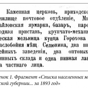 СТЕПАНОВ И.В. Братья Селюнины в Сибирской истории и топонимикеУДК 94(571.14) Степанов И.В., член Русского географического общества Братья Селюнины в сибирской истории и топонимике Аннотация: Исследуется история братьев Селюниных – сибирских предпринимателей конца XIX – начала XX века. Они вели свою деятельность на землях современной Новосибирской области и Алтайского края. Память о них остались в немногочисленных воспоминаниях старожилов и в местных топонимах. Ключевые слова: село Бердское, деревня Михайловка, Селюнинская заимка, Камень, братья Селюнины, маслоделие, пчеловодство, кожевенное дело, топонимы. Село Бердское Барнаульского округа Томской губернии к концу XIX века стало значимым торгово-промышленным центром, в котором пересекались водные и наземные транспортные пути. В селе действовали мукомольные, пимокатные, маслодельческие, кожевенные и кирпичные производства. Среди нескольких десятков бердских купцов выделялся Владимир Александрович Горохов. Он получил статус купца первой гильдии в Томске в начале последнего десятилетия XIX века, однако к этому времени уже более десятка лет владел крупчаточной мельницей на реке Бердь, постоянно наращивая производство муки. После электрификации мельницы, проведённой в 1892 году, объем ее промышленного производства достиг 700 тысяч пудов в год [7]. В это время в официальных материалах по селу Бердскому появляется упоминание ещё одной фамилии человека, ведущего промышленные дела – Селюнин. Так, издание «Список населенных мест Томской губернии... за 1893 год» сообщает, что «Берское село» имеет положение «При реке Оби и устье Берди». И в том селе есть каменная церковь, приходское училище, почтовое отделение, Михайловская ярмарка, базар, пароходная пристань..., два питейных заведения, два оптовых винных склада, одна пивная лавка частного лица [8, c.100-101]. Из местных производств отмечены «крупчато-механическая мельница купца Горохова и маслобойня мещанина Селюнина». Геннадий Антонович Ноздрин, изучавший историю населенных пунктов Сибири [1] уточняет – маслобойня Селюнина производила топленое масло [7]. Мещанское сословие Селюнина было ниже купеческого Горохова, но законы Российской империи того времени позволяли преодолевать эти различия – для этого мещанину было необходимо стать обладателем существенного капитала. Неизвестно, стремился ли мещанин Селюнин войти в более высшее купеческое сословие. Но его как собственные, так и совместные с братьями деяния показывают недюжинное стремление бердских предпринимателей к всемерному развитию своего дела в различных отраслях сельского хозяйства и промышленности разных мест сибирской земли. Упоминание маслобойни Селюнина ограничивается только 1893 годом. Можно предположить, что амбициозный мещанин не выдержал конкуренции с основательным купцом – тремя годами позже Владимир Александрович Горохов одним из первых в Барнаульском округе построил завод, на котором вырабатывалось пять тысяч пудов сливочного масла [7]. Зато теми же годами датируется первое упоминание о новом масштабном замысле Селюнина – пчеловодстве. Селюнинская заимка В июне 2024 года автор посетил деревню Михайловка Искитимского района Новосибирской области, что находится у подножья сопки Чумаковой в верховьях реки Коён, почти в шестидесяти километрах от города Бердск (ран