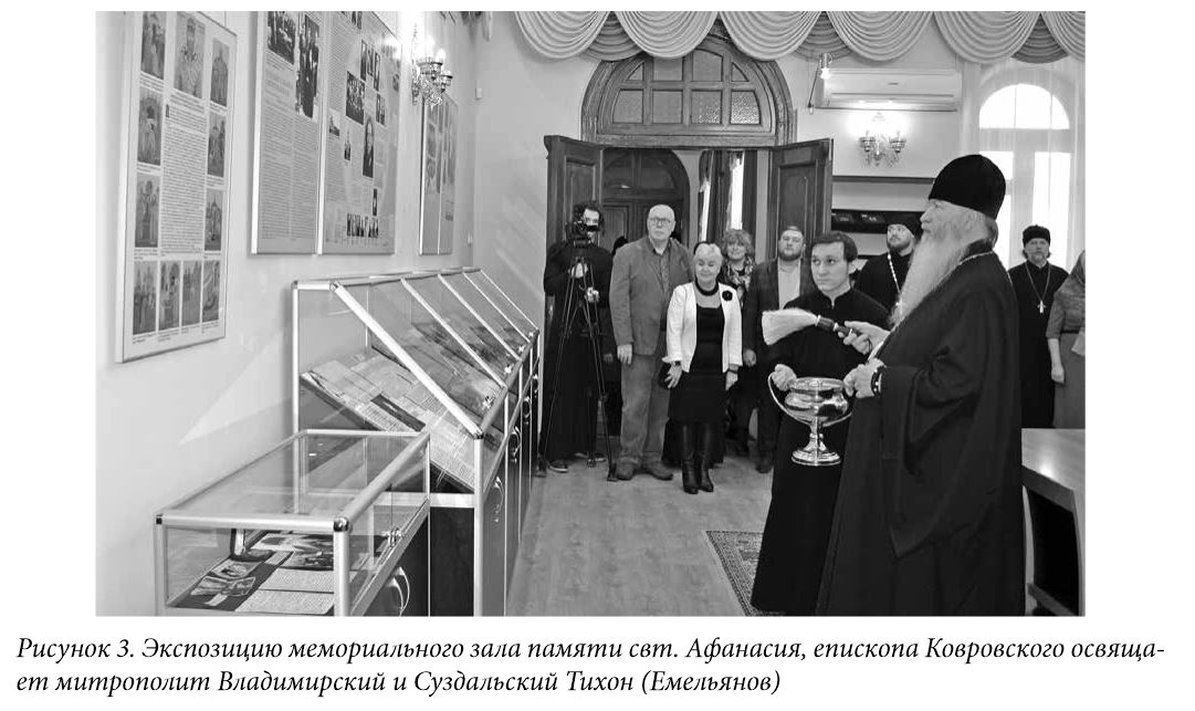 ![]() КИРЬЯНОВА О.Г. Репрезентация церковной жизни 1950–90 гг. XХ века в экспозициях музеев Русской Православной ЦерквиУДК 069 Кирьянова О.Г. ORCID 0000-0001-5137-5230 Институт Наследия Соискатель ОЦАД Москва, Россия «РЕПРЕЗЕНТАЦИЯ ЦЕРКОВНОЙ ЖИЗНИ 1950-90 ГГ. XX ВЕКА В ЭКСПОЗИЦИЯХ МУЗЕЕВ РУССКОЙ ПРАВОСЛАВНОЙ ЦЕРКВИ» Аннотация. Статья представляет собой обзор, созданных религиозными организациями Русской Православной Церкви музейных экспозиций, доминирующей темой которых является послевоенная церковная история, различные аспекты церковно-государственных взаимоотношений этого периода. В ряде случаев музейное повествование строится на биографическом материале выдающихся духовных лиц XX века. Как отмечает автор, именно мемориальные экспозиции обладают наибольшим эмоциональным воздействием на посетителя, позволяя вести рассказ о жизни Церкви послевоенного времени через призму личностного восприятия эпохи. Ключевые слова: музей, церковный музей, церковная экспозиция, мемориальная экспозиция. Хронологически рассматриваемые в настоящем обзоре церковные музейные экспозиции охватывают значительный период времени – от первых послевоенных лет до начала перестройки. Эти десятилетия для Русской Православной Церкви были непростыми в силу целого ряда внешних и внутренних обстоятельств. Существенным фактором, влиявшим на церковную жизнь, являлись религиозная политика советского государства, основной вектор идеологии которого был атеистическим. Отечественный историк М.В. Шкаровский в своей монографии «Русская Православная Церковь при Сталине и Хрущеве» отмечает: «В середине и второй половине столетия советское общество трижды переживало идеологический кризис: в начале 1940-х, середине 1950-х и конце 1980-х гг. И все они совпадают с началом трех ступеней религиозного возрождения в СССР» [1, с.164]. Именно различные аспекты взаимоотношений Церкви и государства являются доминирующей темой церковных музейных экспозиций, посвященных указанному периоду. Комплектование фондов церковных музеев происходит в основном за счет пожертвований, даров из личных собраний, передачи предметов музейного значения из храмовых ризниц, и, гораздо реже, приобретения будущих экспонатов в антикварных магазинах и на интернет-аукционах. Эта особенность важна для понимания механизма формирования церковных экспозиций, обусловленного чаще возможностями экспозиционеров, чем их концептуальной стратегией. Церковные экспозиции, посвященные послевоенной истории Русской Православной Церкви, по профилю можно разделить на две группы: 1. Исторические, отражающие жизнь конкретной епархии, монастыря, храма, учебного заведения либо локальную историю (историю места); 2. Мемориальные. Содержательно в них доминируют два аспекта: фиксация официальных, публичных событий, рассматриваемых в контексте деятельности епархии либо биографии правящего архиерея, и историко-бытовой, отражающий повседневную жизнь верующих мирян и священнослужителей. Особое место среди этих музеев занимает музей «Советский Союз: вера и люди», который является совместным проектом прихода московского храма преподобного Сергия Радонежского в Крапивниках и кафедры церковной истории Московской духовной академии. Этот музей обладает масштабным собранием, отражающим реалии повседневной жизни православных в
