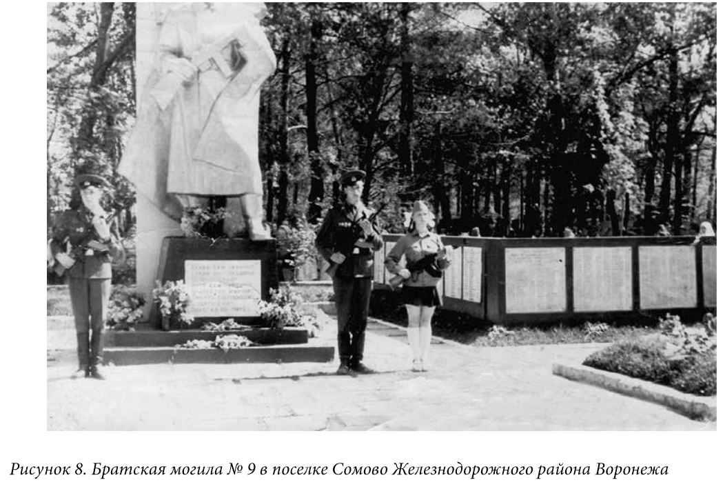 Рисунок 9. Братская могила № 9 в поселке Сомово Железнодорожного района Воронежа. Племянник Н.А. Быкова Виталий Петрович Таров (22.02.1920 -9.01.1982) родился в г. Баку, куда после замужества в самом начале 1910х годов перебралась старшая сестра братьев Быковых Антонина Андриановна Быкова (13.02.1894 [27. Л. 8] – 13.03.1962), по мужу Тарова. Призван Бакинским ГВК в ноябре 1939 г. 29 июня 1942 г. в Севастополе во время службы в попал в плен. Находился в концлагере Слобозия. Участвовал в освобождении Будапешта. Награжден медалью «За победу над Германией в Великой Отечественной войне 1941–1945 гг.», Орденом Красной Звезды. Службу окончил в 1946 г. После войны окончил Бакинский институт народного хозяйства и долгое время жил в Кишиневе, где и похоронен.