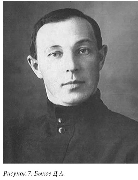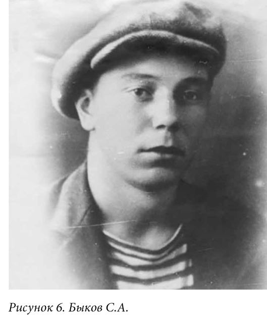 Рисунок 7. Быков С.А. С.А. Быков умел хорошо рисовать. По воспоминаниям его брата - Быкова Николая Андриановича, был художником. В семейном альбоме сохранились фотографии, запечатлевшие его с товарищами в интерьерах с мольбертами и картинами. В 1938 году окончил Ленинградский художественный техникум. С 1936 года начал работать художником-портретистом: в ноябре 1936-июле 1938 года работал художником в Ленинградском объединении «Фото», в июле 1938-январе 1940 годов – художником в Ленинградском Доме Искусств, а с февраля 1940 года – художником на Фабрике художественного оформления «ЛЕНИЗО». В 1938 году женился. Решением районной военной комиссии от 25 июля 1940 года на том основании, что «имеет опыт и знание художественной работы» был отнесен к административно-хозяйственному составу ВМФ, ВУС № 27а или 13. Тогда же ему было присвоено военное звание техник-интендант 1 разряда запаса. В Великую Отечественную войну работал на строительстве оборонительных сооружений. Умер в Ленинграде 1 января 1942 года от голода. Об этом 30 января 1942 года была сделана актовая запись № 193. Проживал в г. Сестрорецк, 2-я линия, д. 159. Похоронен на Тарховском кладбище. В годы Великой Отечественной войны погиб старший брат Н.А. Быкова и С.А. Быкова Дмитрий Андрианович Быков (27.10.1899 [25. Л. 56об-57] - 6.08.1943 [26]), как и они, выходец из села Аркадак Балашовского уезда Саратовской губернии.