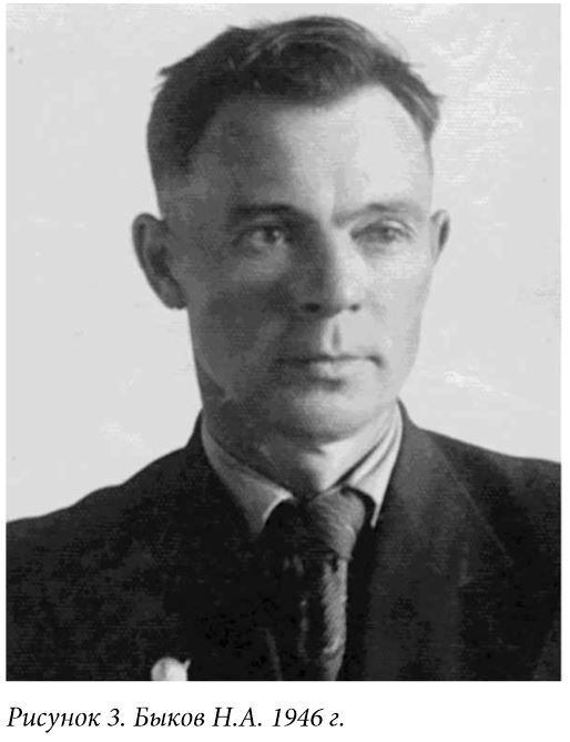 Рисунок 3. Быков Н.А. 1946 г. Дедушка (Н.А.Быков) говорил, что, когда началась война, первым желанием было уйти воевать. Но в силу занимаемой должности он категорически не подлежал мобилизации. В то время в характеристиках о нем писали как о человеке, пользующемся авторитетом, с большим политическим кругозором, идеологически выдержанном, дисциплинированном, волевом, требовательном к себе и подчиненным. По воспоминаниям сына Николая Андриановича Льва Николаевича, во время бомбежек «Электросилы» Н.А. Быков и его друзья сидели в кабинете и слушали английский патефон «This Masters Voice», привезенный Николаем Андриановичем в 1935 году из командировки в Англию. Вскоре после начала войны началась эвакуация завода «Электросила». Демонтажом и погрузкой оборудования, а также агитацией людей ехать в Томск руководил Н.А. Быков. Он оставался в Ленинграде, когда большинство цехов уже вывезли из города. Судьба создававшегося в то время в Томске завода № 653 (завод «Сибэлектромотор») теснейшим образом связана с именем Николая Андриановича Быкова. 1 октября 1941 года он был назначен на должность главного инженера Главэлектромашпрома Наркомата электропромышленности [13. Л. 3] Окончательный приказ № 600-к об этом подписал 22 октября 1941 года народный комиссар электропромышленности СССР И. Кабанов [12. Л. 22]. В этой должности Н.А. Быков принимал участие в перебазировании материальных ценностей и кадров Наркомата электропромышленности в г. Горький и в г. Свердловск. 15 октября 1941 года он был вызван в Смольный, переброшен на самолете в Москву, в которую прибыл 16 октября. В это время Н.А. Быков был во многих командировках по стране. В том числе в Харькове, в котором с конца XIX века существовал электротехнический завод, получивший 21 декабря 1917 года название «Электросила 1». Промышленные предприятия Советского Союза были единым комплексом. Так, на ленинградском заводе «Электросила» выпускали асинхронные двигатели типа А, а в Харькове на заводе «Электросила 1» – асинхронные двигатели типа И. В годы Великой Отечественной войны многие промышленные предприятия Харькова были эвакуированы в города Поволжья, Урала, Сибири. Среди них Харьковский электромашиностроительный завод («Электросила 1»). Находясь в командировке в Харькове, Н.А. Быков частично захватил оккупацию города, которая началась 24 октября 1941 года. Зимой 1941 года по решению ГОКО Н.А. Быкова командировали в Сибирь (Новосибирск, Томск, Кемерово, Прокопьевск) для организации производства изделий военной электротехники. Николай Андрианович приехал в г. Томск в январе-феврале 1942 года. Стояла стужа. По воспоминаниям сына Николая Андриановича Льва Николаевича Быкова (27.03.1930 – 8.12.2002), у Н.А. Быкова на голове был натянут английский носок, а на плечах – рюкзак. В Томске Николай Андрианович принимал участие в организации заводов № 653 и № 690 (позже получившего название Электротехнический завод). 16 апреля 1942 года его назначили главным инженером завода № 653, строящегося на базе эвакуированного завода «Электросила» [13. Л. 3]. А 19 августа 1943 года Н.А. Быкова назначили директором завода № 653. Приказ № 355-к об этом подписал народный комиссар электропромышленности СССР И. Кабанов [12. Л. 33]. При написании статьи мной были просмотрены подшивки томской газеты «Красное Знамя» за военные годы. Газета «Красное Знамя» – это орган Томского горкома ВКП