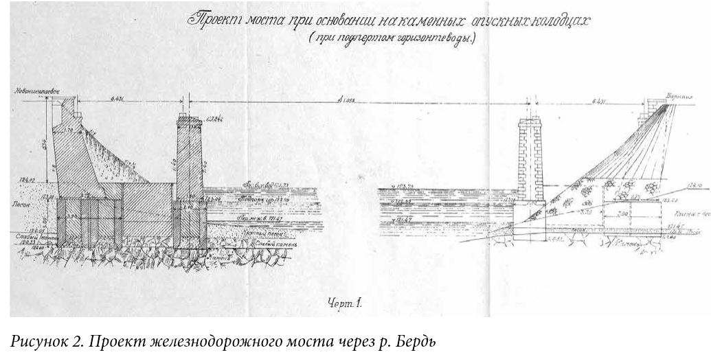 ![]() СТЕПАНОВ И.В. Михаил Ильич Евдокимов-Рокотовский: строитель моста через Бердь, профессор Сибстрина, организатор наукиУДК 94(571.14) Степанов И.В., член Русского географического общества, Новосибирск, Россия Михаил Ильич Евдокимов-Рокотовский: строитель моста через Бердь, профессор Сибстрина, организатор науки Аннотация . В данной статье рассказывается история строительства и последующих реконструкций железнодорожного моста через р. Бердь; излагаются некоторые факты из биографии инженера-строителя моста М.И. Евдокимова-Рокотовского. Ключевые слова : М.И. Евдокимов-Рокотовский, мостостроение, р. Бердь, Сибстрин. Михаил Ильич Евдокимов-Рокотовский родился 29 марта 1887 г. в г. Томске. Его отец и глава дворянской семьи Илья Степанович Евдокимов возглавлял почтово-телеграфное ведомство Томской губернии в чине действительного статского советника. По настоянию отца Михаил начал обучение в реальном училище, а затем поступил в Томский технологический университет. С 1905 г. Михаил Ильич начал приобретать профессиональный опыт сначала в должности среднего техника, а по окончании университета в 1910 г. – инженера-строителя на строительстве сибирских железных дорог. В период с 1913 по 1915 г. М.И. Евдокимов-Рокотовский служил старшим инженером Управления работ Алтайской железной дороги [1]. 3 июня 1912 г. император Николай II утвердил решение о сооружении железной дороги Новониколаевск–Барнаул–Семипалатинск, примыкающей к Транссибирской магистрали. Первым из восьми строительных участков стал перегон Новониколаевск–Бердск–Ургун (0–78 верста) с сооружением железнодорожного моста через р. Бердь. Согласно описанию М.И. Евдокимова-Рокотовского, р. Бердь пересекалась Алтайской железной дорогой на 33-ей версте от Новониколаевска на расстоянии 7 верст от впадения в р. Обь в 720 саженях выше по течению от мельницы Горохова, у которой во всю ширину реки была устроена деревянная плотина. Выбранный для перехода участок реки обладал «редкими благоприятными для устройства моста природными условиями – река здесь на значительном протяжении прямолинейна с однообразным профилем живого сечения и глубинами и в высокую воду не выходит из берегов» [3, с. 35]. Тем не менее, в ходе работ по строительству моста возник ряд затруднений, которые пришлось разрешать с затратой дополнительных сил, средств и времени. Водный горизонт р. Бердь подпирался плотиной мельницы Горохова (вероятно, Сергея – наследника купца В.А. Горохова [2; 6]), который не согласился на спуск воды «ввиду того, что работа мельницы Горохова всегда была весьма большая и доходы её были значительны» [3, с. 36], поэтому сооружение опор моста сначала было решено проводить в открытых опускных колодцах с откачкой воды, но затем пришлось перейти к работе в кессонах. Несмотря на то, что весной 1914 г. горизонт воды поднялся до небывало высокой отметки, правобережный кессон был установлен к 18 мая 1914 г. Однако с левобережным случилось осложнение – с начала марта он стал подмываться подземными ключами, в результате чего наклонился и сдвинулся в сторону. После безуспешных попыток выравнивания кессон был взорван и разобран, а для установки нового был насыпан искусственный остров. В августе левобережный кессон встал на проектную отметку. Кладка опор моста была закончена в октябре 1914 г. [3, с. 36–38]. Сборка ферм моста проводилас