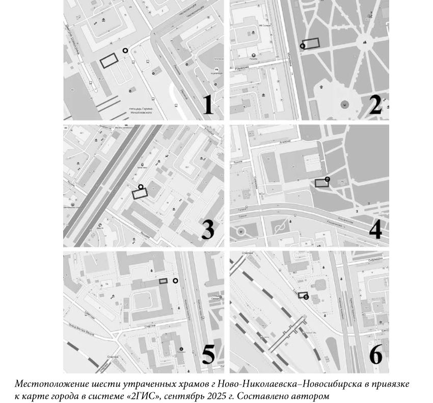 ![]() ГОЛОДЯЕВ К.А. Местоположение утраченных храмов Ново-Николаевска–Новосибирска и их мемориализацияУДК 27.523+726+908 Голодяев К.А. ORCID: 0000-0001-9520-7845 Научный сотрудник МАУК «Музей Новосибирска», г. Новосибирск, Россия Местоположение утраченных храмов Ново-Николаевска–Новосибирска и их мемориализация Аннотация. Данная статья является промежуточным итогом работы группы краеведов и историков Русской православной церкви по определению местоположения утраченных храмов г. Ново-Николаевска (Новосибирска) и предложению мер по фактической мемориализации этих мест для информирования жителей и гостей города. Определены точные места шести зданий храмов, утраченных в период 1900–1971 гг. В статье содержится предварительная информация по их истории и причту, и приводится пример воплощения проекта в одном из действующих храмов Новосибирска. Предлагается расширить рамки территории охвата потенциальной аудитории данной важной краеведческой информации. Ключевые слова: Ново-Николаевск, Новосибирск, утраченные храмы, мемориализация, память, краеведение Летом 2024 г. протоиерей Виктор (Демьяненко) из церкви во имя Покрова Пресвятой Богородицы взялся за осуществление давнего намерения обозначить места, где в городе Новосибирске располагались ныне утраченные православные храмы, поскольку любому верующему тяжело видеть, как на некогда святых местах находятся автостоянки или бизнес-центры без всякого указания на прошлое значение места. Как писал сам о. Виктор: «Каждому освященному храму даётся ангел-хранитель. Этот ангел будет предстоять на месте разрушенного храма до самого второго пришествия. Он ждет каждого, кто приходит на богослужения в дом Отца небесного и молится за всех. Ангел принимает и тех, кто приходит с радостью и благодарностью Господу и тех, кто приходит с болью, проблемами и просит помощи у Бога. Он же скорбит и плачет, если храм пустеет или подвергается поруганию и разрушению. Ангел ждет, что люди принесут покаяние, задумаются о смысле жизни. Он никогда не покинет то место, где находился разрушенный храм, а будет молиться и молиться, надеясь, что когда-то на этом месте будет, воздвигнут новый Божий дом» [частная переписка]. О. Виктор пригласил к участию в проекте церковного историка Евгения Шабунина и автора этой статьи – научного сотрудника Музея Новосибирска. Для пилотного проекта мы решили остановиться на четырёх храмах: Даниила Пророка, Воскресения Христова, Богородице-Казанском, Успенском, а также Никольской часовни в здании реального училища и молитвенном доме во имя Александра Невского. Никольские храмы в Кривощёково, Военном городке, Усть-Инской и некоторые другие домовые храмы планируются для изучения на следующем этапе, хотя уже имеется точная информация по их местоположению. Основной замысел проекта – обозначить точное местоположение утраченных храмов в пространстве современного города и отметить их места памятными знаками, чтобы жители города и его гости, проходя мимо, могли обратить на них внимание и знали, что «на этом месте находился…». Группой мы объездили все шесть мест, проанализировали большое количество архивных документов, старинных карт, статей об этих храмах и их священнослужителях, прошагали эти локации снова и снова, в результате чего с максимальной точностью (до метра-двух) удалось определить м