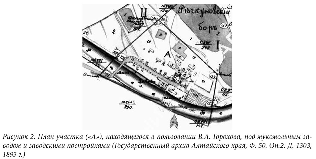 ![]() СТЕПАНОВ И.В. Политические штрихи к портрету купца ГороховаУДК 94(571.14) Степанов И.В., член Русского географического общества, Новосибирск, РоссияПолитические штрихи к портрету купца Горохова Аннотация: В материале рассматриваются общественно-политичесие аспекты последних лет жизни известного томского купца и бердского предпринимателя В.А. Горохова. Представленные данные свидетельствуют о стремлении Горохова не только к развитию собственного дела, но и внесению вклада в совершенствование государственного устройства. Ключевые слова: Горохов, купец, Берское, Бердск, мельница, предпринимательство, коммерция, сельскохозяйственный союз, областничество, политика, конституционно-демократическая партия Владимир Александрович Горохов, поднявшийся по сословной лестнице от мещанина до купца первой гильдии, был успешным предпринимателем. Этому в немалой степени способствовала его приверженность к техническим новациям – его мукомольный комплекс, стоявший на реке Бердь, оснащался самым современным оборудованием - вплоть до собственной электростанции [4]. Рисунок 1. Купец Горохов В.А. Томский купец Горохов, внёсший большой вклад в развитие села Берского Томской губернии, помимо коммерческой деятельности занимался благотворительностью, и активно поддерживал образовательные начинания [7].Активный период деятельности В.А. Горохова в селе Берском начинается с конца семидесятых годов XIX века, когда он стал арендатором (1879 г.), а затем и собственником (1883 г.) крупчаточной мельницы, построенной не ранее 1865 года коллежским секретарём А.П. Васильевым. В 1892 году мельница была электрифицировала, и объём её промышленного производства достиг 700 тыс. пудов в год при численности работающих 105 человек [6]. К последнему десятилетию XIX века при мельнице на средства В.А.Горохова «содержится врач и аптека для бесплатного лечения рабочих и служащих мельницы; для детей рабочих устроена школа, библиотека и интернат на 12 бедных детей, которые содержатся бесплатно... Кроме наук, мальчики обучались столярному, токарному и слесарному ремеслу, девочки – рукоделью» [3, c. 115]. В 1903 году на средства бердского купца построена четырехгодичная ремесленная школа. В конце того же года был учреждён Торговый дом «В. А. Горохов», деятельность которого охватывала мельничный комплекс, маслозавод, колбасную мастерскую, а также магазины, склады, пристани в разных населенных пунктах Сибири [4]. Он владел пароходом «Мельник» с семью баржами, совершавшим буксирно-пассажирские рейсы по маршруту Бийск – Томск – Тюмень. Рис.2 План участка («А»), находящегося в пользовании В.А. Горохова, под мукомольным заводом и заводскими постройками. (Государственный архив Алтайского края, Ф. 50 Оп.2 Д.1303, 1893 г.) В 1907 году мельница Горохова уже относилась к III разряду [9, с. 62], что соответствовало размеру годового размола зерна от 1600 до 2500 пудов [10, с.104]. В.А. Горохов успешно совмещал предпринимательскую и общественную деятельность - служил почётным мировым судьёй Томского окружного суда в течение трёх избирательных сроков (1897, 1900, 1903 г.г.). За «выслугу лет» в системе государственного управления в 1901 получил чин коллежского регистратора со старшинством, в 1904 – губернского секретаря со старшинством. В 1901 вошёл в первый состав старшин Томского биржевого комитета. За заслуги был представлен к государственн
