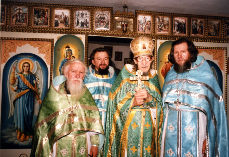 На фото слева направо: Протоиерей Валентин Бирюков, протоиерей Василий Бирюков, архимандит Макарий (Реморов), протоиерей Александр Реморов