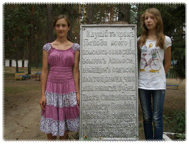 Тайны Обского моряВиктория БЕЗРУК, ученица 7 класса Завьяловской средней школы, Искитимского района. В нашем старинном красивом селе Завьялово расположен православный детский лагерь во имя преподобного Серафима Саровского. Каждый, кто приезжает в лагерь, обращает внимание на надгробную плиту, которая стоит возле поклонного креста. На ней можно прочитать такую надпись: «Идущий в храм Господа моего! Помолись о мне рабе Божием Аполосе, лежащем под сей плитой, помня, что и ты некогда будешь Здесь. Священник Аполос Павлов Киселев Род. 1853 г. октября 22. Умер 17 окт. 1888 г.»