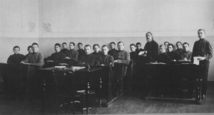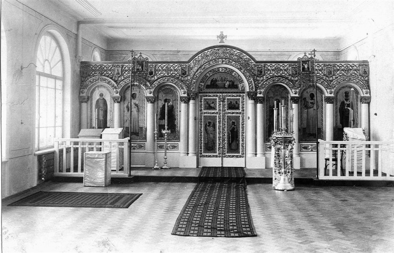 Церковь во имя Святителя и Чудотворца Николая в реальном училище имени Дома Романовых1 сентября 1906 года в Новониколаевске начало свою работу частное мужское училище, готовившее юношей для поступления в технические вузы. Именно этому учебному заведению суждено было стать сначала (29 января 1908 года) частным реальным училищем, а затем правительственным (1 июля 1918 года); получившем в честь празднования 300-летия Дома Романовых наименование «Реальное училище имени Дома Романовых». В 1908 году Андрей Дмитриевич Крячков - архитектор Западно-Сибирского учебного округа получил заказ от Новониколаевской городской управы на проект здания реального училища. Решено было вести строительство хоз. способом под наблюдением специально созданной комиссии, в которую вошли директор училища Г.А. Бутович – председатель комиссии, Городской Голова А.Г. Беседин, купец I гильдии, Почетный попечитель училища Н.А. Туркин, член городской управы И.Ф. Стоилов, законоучитель училища протоиерей Петр Васильков и врач училища К.И. Сосыкин. Проект здания Реального училища в Новониколаевске; не осуществлен. Из фондов музея истории архитектуры Сибири им. С. Н. Баландина Спустя два года, 20 октября 1910 года состоялось торжественное освящение нового здания. В нем помимо восьми классных комнат располагались церковь во имя святителя Николая Мирликийского, актовый и гимнастический залы, кабинеты физики, естественноисторических наук, рисовальный и чертежный классы, химическая и биологическая лаборатории, школьная обсерватория, метеорологическая станция, душевые для учащихся, столовая, учительская и кабинет врача. К южному крылу училища примыкал трехэтажный жилой корпус с полуподвалом, а во дворе была предусмотрена площадка для игр и гимнастики. Для которой был устроен специальный выход из здания через крытый тамбур. В 1913 г. при училище была создана оранжерея. Кроме того, здание училища имело автономные водопровод и канализацию, и было полностью электрифицировано. Реальное училище стало крупнейшим зданием на Николаевском проспекте. Оно на несколько сажен отступало от красной линии проспекта и было отгорожено от тротуара красивой и скромной металлической решеткой на гранитном цоколе, поддерживаемой гранитными столбами. В новое здание было приобретено 382 инструмента в физический кабинет, в ученической и фундаментальной библиотеках насчитывалось около 4 тысяч книг. Бессменным директором училища со дня его основания был коллежский советник Григорий Антонович Бутович, а преподавателями состояли: протоиерей Петр Яковлевич Васильков – Закон Божий, Зинаида Ивановна Бутович - начальница подготовительного отделения училища, Алексей Григорьевич Лукин – естественная история, выпускник Хормейстерских курсов Императорской придворной капеллы Николай Степанович Петров – помощник наставников и преподаватель пения во всех классах, Петр Петрович Ильин – математика, Петр Иванович Свинцов – физика и математика, Генрих Мартинович Ассафрей – немецкий язык, Нина Никандровна Копаневич – французский язык, Ф.И. Покорный – гимнастика, П.Н. Кузнецов – музыка, Евгений Евгеньевич Ранг – история, Алексей Егорович Степанов – рисование, черчение и чистописание. Врачом училища состоял надворный советник Константин Иванович Сасыкин. Обучение в училище было платным, но по решению П