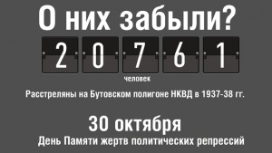 Могила для 20 тысяч человек: как помнить о каждом?Ежегодно 30 октября в России проходят траурные акции и памятные митинги, посвященные жертвам политических репрессий. Множество людей приходит на Бутовский полигон — одно из мест массовых казней и захоронений жертв сталинских репрессий. Это не только «Русская Голгофа», на которой были казнены около 1000 представителей духовенства. Это одна большая могила, в которой покоятся останки десятков тысяч самых разных людей, расстрелянных по самым разным политическим мотивам. Сегодня поимённо известны 20 тысяч 761 человек. — В Бутове похоронены не только новомученики, но еще множество людей репрессированных по самым разным политическим мотивам. Как память о них хранится в Бутове?