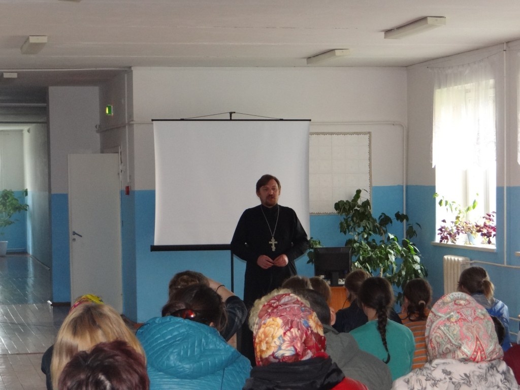 По окончание молебна в школе состоялся урок «Святые для Малокрасноярки имена» с участием библиографа Кыштовской библиотеки Кошелевой.Г.П, учителя биологии Еланцева.Н.В, народного коллектива «Деревенька».