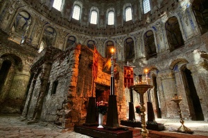 Мальчишка страшно перепугался: ведь Патриарх еще продолжал молиться, нигде ни у кого не было никакого огня, только у него… Он тут же потушил свечи, сунул их за балку, сиганул вниз и мгновенно растворился в толпе.