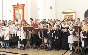 Литургия, где поют дети15 мая, в Неделю святых жен-мироносиц, в Новосибирске прошла традиционная архиерейская Литургия для детей. На богослужении в Троице-Владимирском соборе собралось 250 учащихся православных гимназий и воскресных школ. Число хоровых коллективов, участвующих в «детской» архиерейской Литургии, постоянно растет. В этом году их было 9 — из гимназий прп. Сергия Радонежского (Академгородок), прп. Серафима Саровского (г. Бердск), равноапп. Кирилла и Мефодия (Калининский район), равноап. кн. Владимира (Ленинский район), свт. Игнатия Брянчанинова (микрорайон «Щ»), воскресных школ Вознесенского кафедрального собора, Покровского храма, Сергиево-Казанского храма в п. Краснообск и храма Успения Пресвятой Богородицы на Березовой роще.