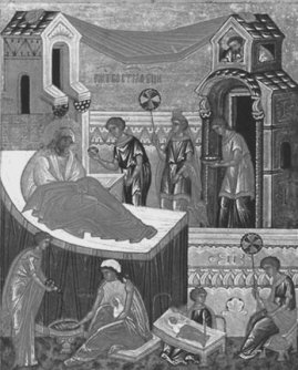 Первого октября во Влахернской церкви Константинополя, где хранилась риза Богоматери, Ее головной покров (омофор) и часть пояса, во время Всенощного бдения, святой Андрей, Христа ради юродивый (память 2 октября),