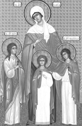 небесные обители. Святая София, претерпев за Христа большие душевные муки, вместе с дочерьми причислена Церковью к лику святых. Пострадали они в 137 году. Старшей, Вере, было тогда 12 лет, Надежде – 10, а младшей, Любови, – лишь 9 лет.