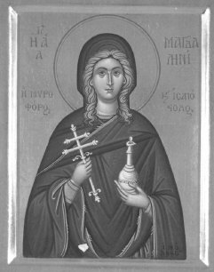 Святая Мария Магдалина следовала за Христом вместе с другими женами, исцеленными Господом, проявляя трогательную заботу о Нем. Она не оставила Господа после взятия Его иудеями, когда начала