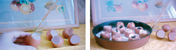 посуду. Скорлупу, стараясь не разбить, вымыть, подсушить и смазать