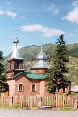 Через какое-то время мы едем по Чуйскому тракту, и, примерно в полдень, мы уже в Чемале. Там мы зашли в храм в честь иконы Божией Матери «Всех скорбящих Радость», помолились, спели несколько тропарей, сфотографировались с местным батюшкой, из любопытства побывали в районном краеведческом музее, находящимся по соседству с храмом, благо, что вход стоит всего 10 рублей. К сожалению, ничего примечательного мы там не обнаружили: самыми запоминающимися были, на мой взгляд, чучела рыси, зайца и балабана. Продавались в музее и местные сувениры из полудрагоценных камней, но увы, подавляющее большинство поделок оказались разного рода оберегами и талисманами.