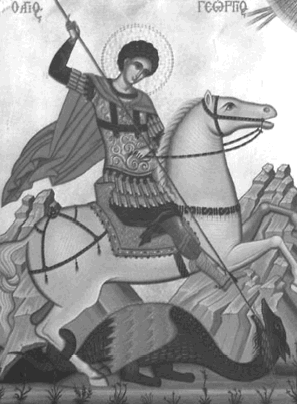 Святой Георгий именуется Победоносцем, но не за военные подвиги, а за победу в страшном единоборстве с диаволом, устами императора требовавшим отречения. Георгий, поражающий змея, этот иконографический сюжет, в основу которого положена одна из древних легенд, означает победу над злом, пресмыкающимся по земле. Всадник выше этого зла, он не снисходит до того, чтобы сразиться со змеем в рукопашной схватке, чтобы испачкать свои руки. Даже его конь остается белоснежно-чистым…