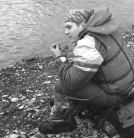 20.00 Аккуратно посредине между Репьево и Плотниково нашлось неплохое место. Причаливаем, осматриваемся, ищем ровные площадки для палаток. Проблема выбора - остаться здесь или поискать место удобнее за следующим поворотом. Все, наконец, решение принято: палатки - здесь, костер - здесь. Разгружаемся! Мажемся "Рефтамидом" сезон активности клещей уже в полном разгаре, нужно поостеречься. Дежурным - готовить ужин, остальным - носить вещи, ставить палатки, собирать дрова. Через час лагерь готов. Вода кипит, Сергей Соколов распределяет продукты на ужин. Палатки уже натянуты, спальники аккуратно расстелены. Плотный горячий ужин, потом чай. Погода постепенно портится, начинает накрапывать дождик, который к ночи переходит в холодный моросящий туман с порывами пронизывающего ветра.