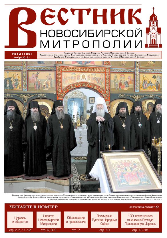 Другие новости по теме:"Вестник Новосибирской Митрополии" №14 (187) декабрь 2018 г"Вестник Новосибирской Митрополии" №11 (184) октябрь 2018 г"Вестник Новосибирской Митрополии" №10 (183) сентябрь 2018 г"Вестник Новосибирской Митрополии" №12 (172) ноябрь 2017 г"Вестник Новосибирской Митрополии" №11 (131) ноябрь 2014