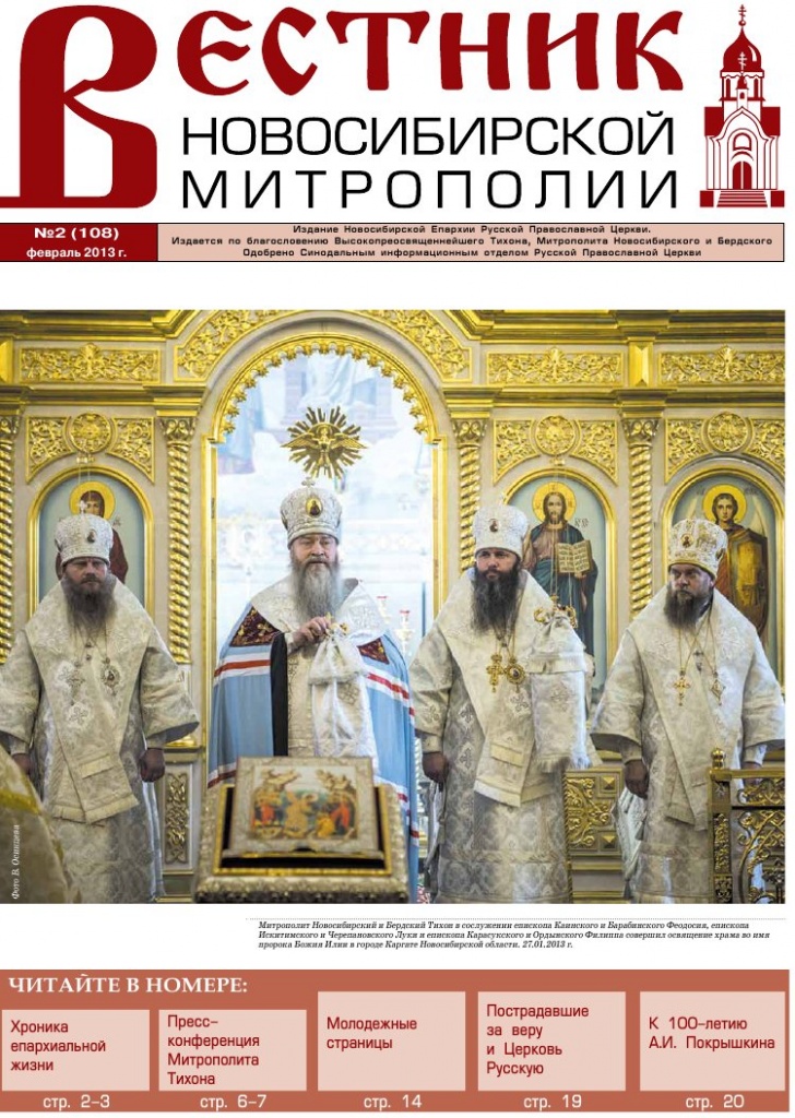 Другие новости по теме:"Вестник Новосибирской Митрополии" №2 (175) февраль 2018 гСпецвыпуск №8 (114) июль 2013 г. "Вестник Новосибирской Митрополии" к 40 ..."Вестник Новосибирской Митрополии" № 7 (113), июнь 2013 г."Вестник Новосибирской Митрополии" № 6 (112), май 2013 г."Вестник Новосибирской Митрополии" № 1 (107), январь 2013 г.