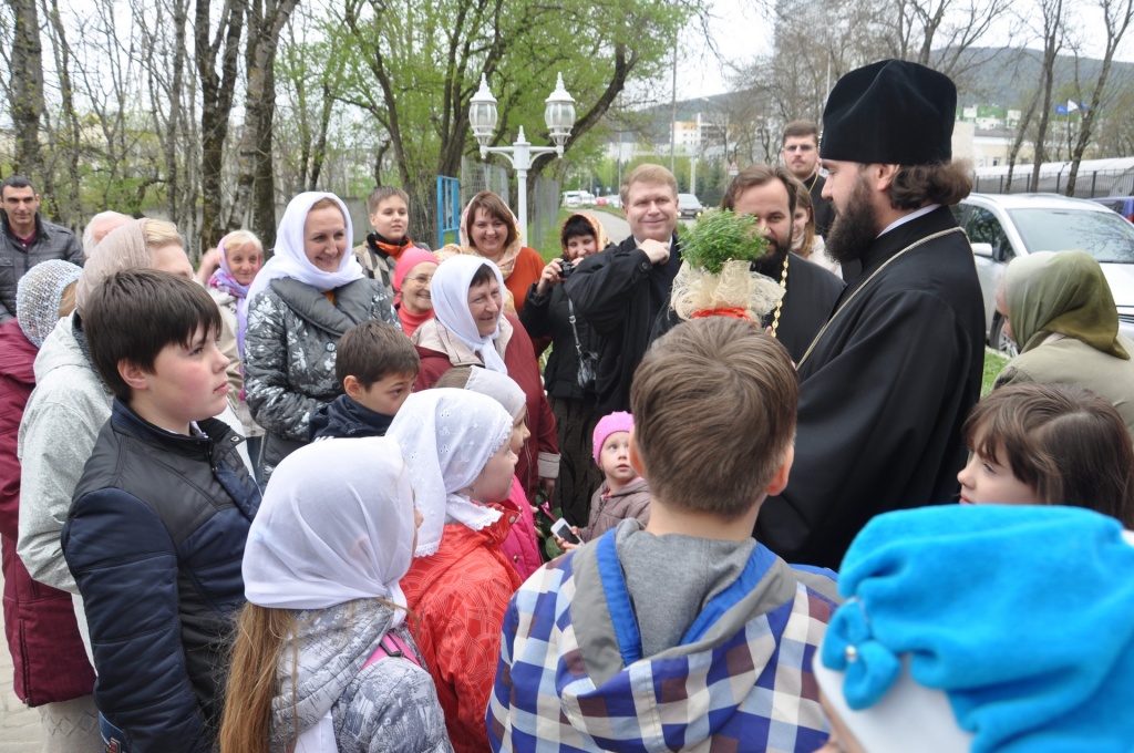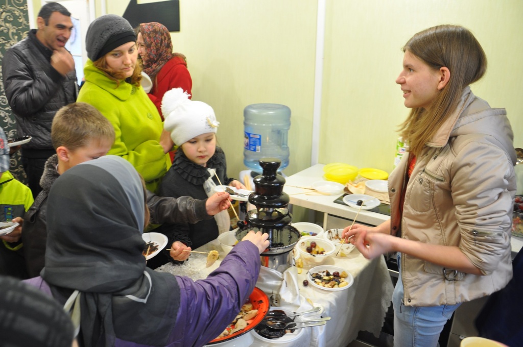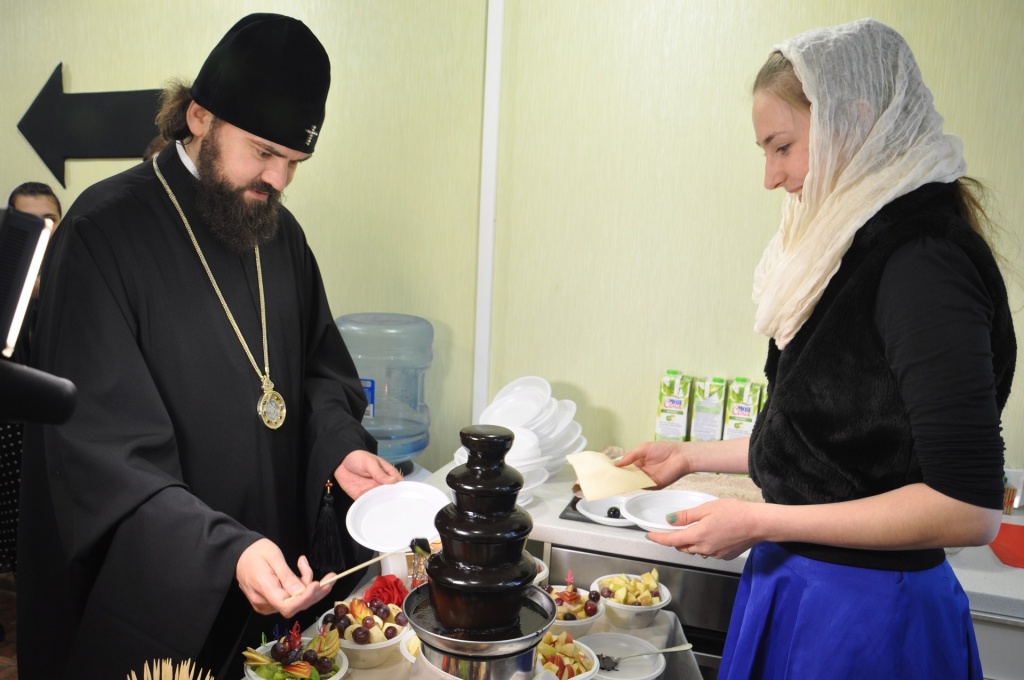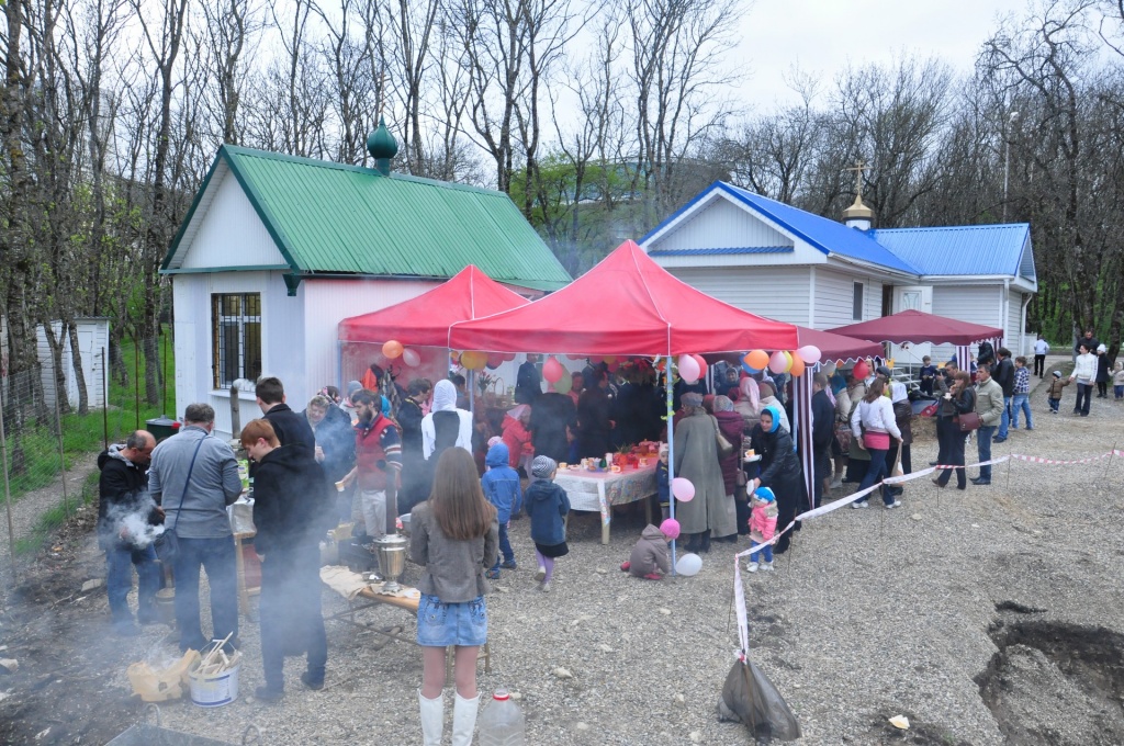 Антикафе "Трапезная" открылось в Преображенском приходе ПятигорскаОткрытие антикафе "Трапезная" состоялось 25 апреля 2014 в Преображенском приходе поселка Энергетик (Пятигорск). Открытие нового проекта прошло в формате большого приходского праздника. После краткого молебна на начало доброго дела, который совершил архиепископ Пятигорский и Черкесский Феофилакт о временном храме прихода, все перешли в церковный двор. Здесь располагается строительная площадка типового храма, строительство которого начали в минувшем году. Открытие решили провести не в небольшом вагончике, где будет постоянно располагаться "Трапезная", а на открытом воздухе под шатрами. Фуршет состоял из традиционных пасхальных блюд, а также шоколадного фонтана. Для иван-чая развели настоящий самовар. Украшением вечера стало выступление солисток группы "Айархаан” (участников фестивалей WOMAD). "Трапезная" будет функционировать в формате открытого пространства для общения, творчества, познавательного досуга, душеполезного чтения, дискуссий и бесед на актуальные темы. Всегда можно будет бесплатно угоститься чаем, кофе и разными вкусностями. Будут проводиться ремесленные и музыкальные мастер-классы, библейские чтения, кинопросмотры, беседы со священником и многое другое. Антикафе не преследует коммерческих целей, и не будет взимать плату с гостей за время, проведенное в нем, за мастер-классы или за что-либо еще. Между тем, гостям предлагается приносить с собой что-нибудь к общему столу. Адрес: Пятигорск, поселок Энергетик, улица Подстанционная, 10-а * Антикафе (также тайм-кафе, тайм клуб) — публичное заведение социальной направленности, место для встреч, времяпрепровождения, оформленное в формате кафе или клуба, "арендуемое" посетителями на время. Это заведение для общения, а не для еды, где, однако, также можно выпить горячего чая или кофе. Явление приобрело популярность в начале 2010-х годов в России и странах СНГ. В антикафе гарантированы напитки и десерты, игры с друзьями и незнакомыми людьми, коворкинг, просмотр кинофильмов. За все предоставленные услуги плата не взимается, оплачивается только время пребывания. Почти во всех заведениях этого формата еду можно приносить с собой, в некоторых дается возможность приготовить из нее блюдо на месте.