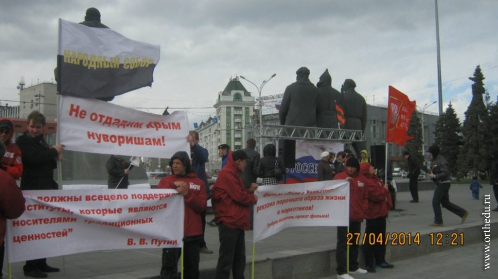 РЕЗОЛЮЦИЯ МИТИНГА В Защиту общественной нравственности и традиционных семейных ценностей в средствах массовой информации и информационном пространстве 27 апреля 2014 года Мы, участники митинга, прошедшего в Новосибирске отмечаем, что «либеральный эксперимент» над Россией, который продолжается уже более 20 лет, несовместим с её ментальностью, духовностью и культурой. Негативными последствиями либерального курса, построения «общества потребления» являются бездуховность, безнравственность, разрушение чувств патриотизма. Россия сегодня испытывает мощное давление внешних и внутренних сил, заинтересованных в её разрушении. Борьба за традиционные ценности и культуру, за нравственность становится сегодня борьбой за выживание и будущее нашей Родины, за суверенитет России. Доктрина информационной безопасности Российской Федерации, утвержденная Президентом РФ от 9 сентября 2000г. № Пр-1895, называет девальвацию духовных и нравственных ценностей в качестве одной из угроз информационной безопасности России. Нужно признать: эта угрозасуществует, но должной государственной защиты нет! Участники митинга предлагают органам власти принять следующие меры: на федеральном уровне: - отменить установленный в Конституции РФ запрет на государственную идеологию, а значит, запрет на исповедание собственных базовых ценностей. Президент страны В.В. Путин 19.12.2013 года на ежегодной конференции заявил, что без традиционных ценностей общество деградирует. Требуем указать в Основном законе страны традиционные для нашего народа ценности, такие как приоритет общественных интересов перед частными, обязанностей перед правами, социальная правда (принцип справедливости), любовь к Родине, защита семьи, как основной структуры общества и основание крепости государства; В развитие положений статьи 55 Конституции России принять Закон «О защите общественной нравственности», которым: а) Определить нравственность, как категорию и ценность, охраняемую государством и применимую не только к человеку, но и к обществу в целом; б) Установить запрет на злоупотребление гражданами, иными лицами, организациями, принадлежащими им правами и свободами в виде любых формы посягательств (отрицание, умаление, глумление и иное умаляющее действие или высказывание) на общественную нравственность; в) Ввести в оборот и определить полномочия общественного органа (организации), компетенция которого будет являться реагирование на любые формы таких посягательств путем формирование компетентного мнения и обращение с ним в суд для решения вопроса о привлечение виновных в посягательстве лиц к административной и уголовной ответственности. Установить порядок формирования такого органа, нормы представительства в нем традиционных конфессий, профессиональных сообществ и иных лиц; г) Установить формы государственной (судебной) защиты общественной нравственности на основе равного доступа к правосудию, перечень мер и санкций, применяемых к лицам, осуществившим посягательства. д) Внести соответствующие дополнения и поправки во все связанные с реализацией указанного федерального конституционного закона, кодексы, иные законы и нормативные акты. В период законодательной работы над данным документом и до момента его принятия считаем необходимым незамедлительно: - принять новый Зак