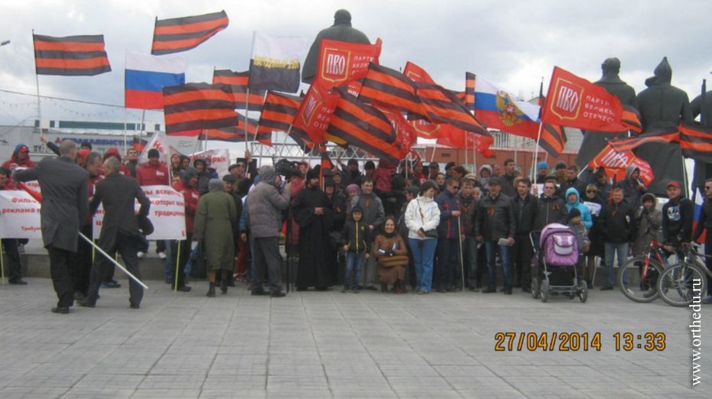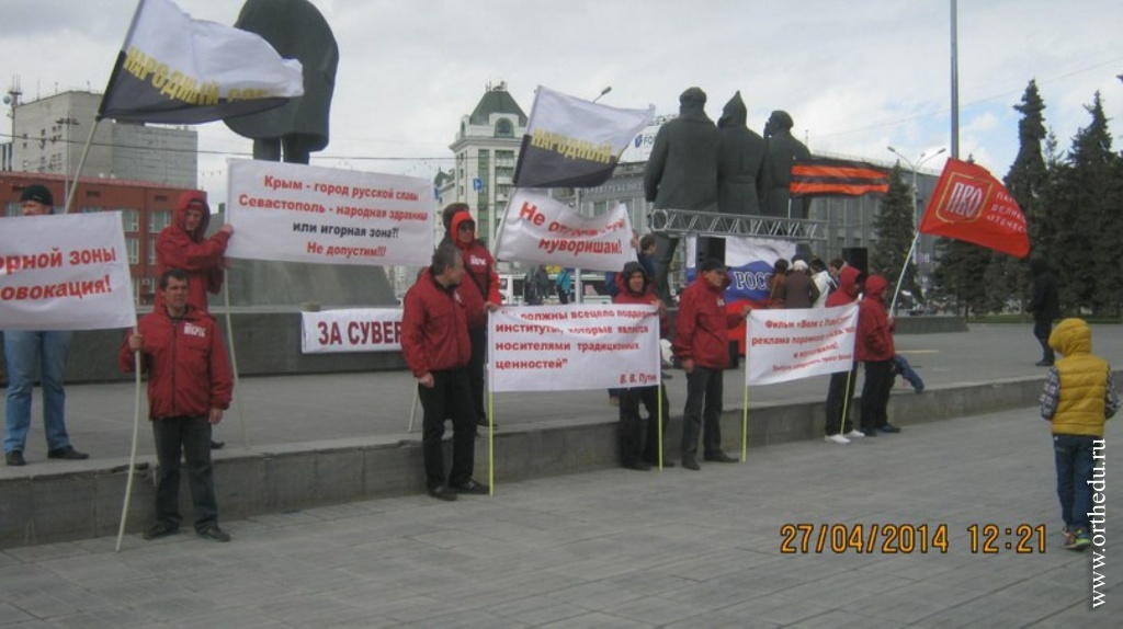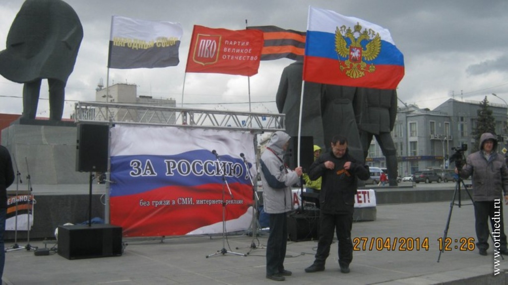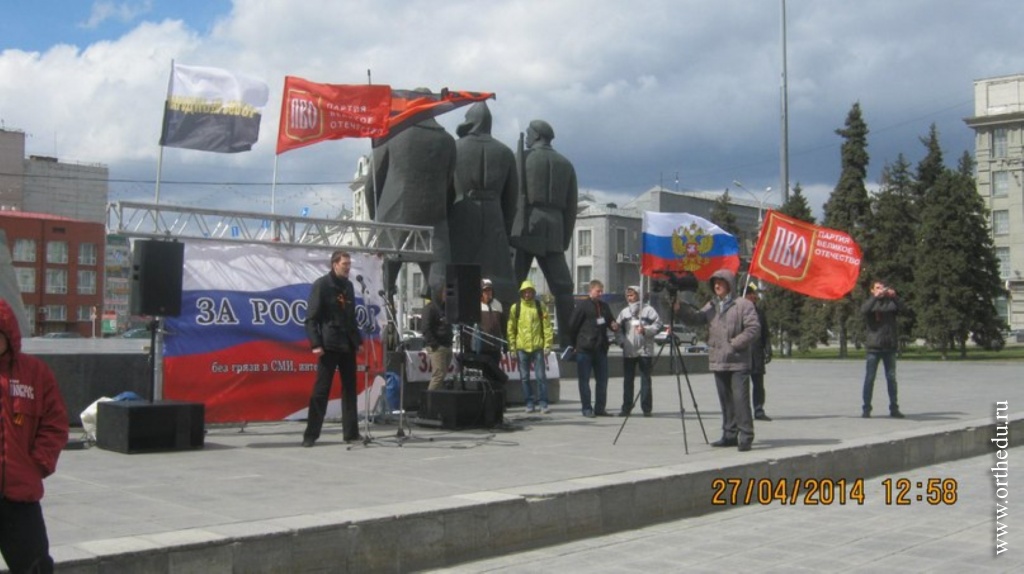Митинг был проведён тремя общественными организациями: Региональное отделение в Новосибирской области партии «Партия Великое Отечество», Новосибирское отделение движения «Народный Собор», «Национально-освободительное движение» в Новосибирской области. Среди участников митинга и выступавших были и представители Всероссийского родительского сопротивления, Совета патриотических организаций Новосибирска, представитель Новосибирской Митрополии. Идею митинга выразил главный плакат на центральной трибуне «ЗА РОССИЮ! Без грязи в СМИ, интернете, рекламе». Также были плакаты: «Создание игорной зоны в Крыму – провокация!»,«Не отдадим Крым нуворишам!», «Требуем запрета государственного финансирование абортов! России нужны свои сыны и дочери, а не иммигранты!», « За многолетнюю бездеятельность по защите граждан от непристойной рекламы руководителя УФАС Гаврилова С.В.- в отставку!», « Фильм «Волк с Уолл-стрит» - реклама порочного образа жизни и наркотиков! Требуем запретить прокат фильма!» « Требуем решительной борьбы с наркотическим лобби! В стране ежегодно погибает 100 тыс. граждан от наркотиков. Иссякают жизненные силы народа» и др. Вел митинг Юрий Сергеевич Зырянов - председатель Новосибирского отделения «Партии Великое Отечество». На митинге основные выступления сделали: Юрий Алексеевич Задоя – руководитель Новосибирского отделения общественного движения «Народный Собор», Вадим Петрович Шилов -член политического комитета Регионального отделения в Новосибирской области партии «Партия Великое Отечество», Алексей Юрьевич Першильев - Национально-освободительное движение, Валерий Яковлевич Бурдиян – председатель исполнительного комитета Совета патриотических объединений Новосибирска и Новосибирской области, Кутявин Николай Викторович– координатор Новосибирского отделения общественного движения «Суть времени», Артемий Сильвестров – руководитель Православного Молодежного Миссионерского Центра Новосибирской митрополии. Все выступавшие говорили о том, что защита нравственности и традиционных семейных ценностей является стратегически важной задачей государства и общества. На митинге были высказаны требования о незамедлительном введении общественного нравственного контроля за деятельностью СМИ, в сфере рекламы и в интернете, необходимость принятия федерального закона в защиту нравственности. Особенно были подчёркнута многолетняя негативная роль телеканалов в насаждении безнравственности, к сожалению, контролируемых государством. Разговоры о патриотизме, идеологии, нравственных ориентирах разбиваются о политику ведущих отечественных телеканалов, таких как 1 канал, РенТВ ТНТ. Очень остро прозвучала тема о недопустимости строительства в Крыму игорной зоны. Эта идея единодушно была названа провокацией. Участниками митинга поддержали законодательную инициативу Самарской Губернской Думы о запрете государственного финансирования абортов и высказали призыв к депутатам законодательного собрания Новосибирской области поддержать эту инициативу. Тем более, что у депутатов уже находится несколько тысяч подписей граждан и 15 общественных организаций Новосибирска за запрет абортов. Участники митинга потребовали отставки руководителя Управления Федеральной антимонопольной службы по Новосибирской 