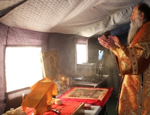 Архиерейская литургия в полярном лагереЕпископ Нарьян-Марский и Мезенский Иаков возглавил экспедицию на Северный Полюс, снаряженную руководством компании «РусГидро». Ее участниками стали специальный представитель российского Президента по международному сотрудничеству в Арктике и Антарктике Артур Чилингаров и председатель правления «РусГидро» Евгений Дод. Владыка освятил регулярный ледовый полярный лагерь «Барнео» и совершил там Божественную литургию, сообщает пресс-служба Архангельской епархии. За богослужением молились полярники и десантники, обеспечивающие парашютную высадку группы, которая станет ядром формирующегося в настоящее время арктического батальона российских Вооруженных Сил. «Местом молитв русских полярников и воинов стала походная церковь во имя святителя Николая Чудотворца – покровителя русских первопроходцев, мореплавателей, миссионеров», – рассказал епископ Иаков. Он также отметил, что на время пребывания экспедиционной группы удаленность ледового лагеря от точки географического полюса составляла приблизительно 70 километров. Направление дрейфа льдов определяется течениями Ледовитого океана