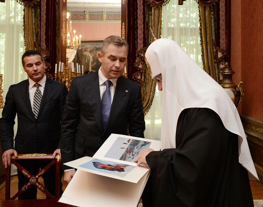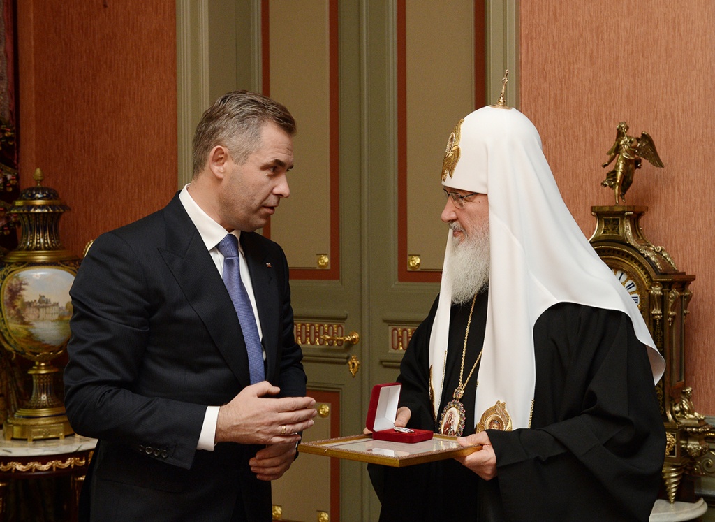 Участники встречи обсудили основные направления и перспективы дальнейшего взаимодействия Русской Православной Церкви и аппарата Уполномоченного по правам ребенка. Святейший Патриарх Кирилл напомнил, что во время предыдущей встречи с П.А. Астаховым в апреле 2012 года состоялось подписание Соглашения между Синодальным отделом по церковной благотворительности и социальному служению и Уполномоченным при Президенте Российской Федерации по правам ребенка о взаимодействии в области защиты прав и интересов несовершеннолетних. Предстоятель Русской Церкви предложил проанализировать это сотрудничество и накопившиеся проблемы, требующие совместного осмысления. П.А. Астахов поблагодарил Святейшего Патриарха Кирилла за тесное сотрудничество представителей Церкви с аппаратом Уполномоченного по правам ребенка, особо отметив активное участие в совместных мероприятиях и совещаниях председателя Синодального отдела по социальному служению епископа Пантелеимона. Уполномоченный по правам ребенка также с удовлетворением отметил вхождение председателя Патриаршей комиссии по вопросам семьи, материнства и детства протоиерея Димитрия Смирнова в состав Совета по защите семьи и традиционных ценностей при Уполномоченном по правам ребенка. Предстоятель Русской Церкви подчеркнул необходимость сохранения традиционных семейных ценностей. «Если мы потеряем то, что скрывается под скромным понятием "традиционные ценности", мы потеряем ценностное измерение нашей жизни… Мы ценим в Вашей работе именно способность защищать эту ценностную основу нашей жизни в той сфере, которая является очень чувствительной — в сфере семьи и детства», — сказал Святейший Патриарх Кирилл. На память о встрече П.А. Астахов подарил Святейшему Патриарху фотоальбом, созданный детьми седьмой Российской молодежной арктической экспедиции «На лыжах — к Северному полюсу!» по итогам путешествия на Северный полюс. П.А. Астахов поздравил Святейшего Владыку с наступающим днем тезоименитства. Уполномоченный по правам ребенка вручил Его Святейшеству почетную медаль «За бескорыстный труд в деле защиты детей» Iстепени и почетную грамоту «За выдающийся вклад в дело воспитания молодежи и духовное возрождение России, всемерную заботу об укреплении семейных традиций, духовно-нравственных ценностей, активную деятельность в сфере защиты и охраны материнства, отцовства и детства».