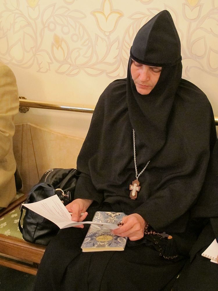Одна за другой на кафедру поднимались игумении монастырей и настоятели храмов, основанных в честь святой преподобномученицы Елизаветы Федоровны. Матушки и священники смущенно отмечали, что готовились перечислять виды социального или миссионерского служения своей общины, но понимают, что служение, по сути, у всех одинаково. Почти все помогают больным если не в психиатрическом, то в туберкулезном диспансере подготовиться к исповеди и причастию, оказывают бытовую помощь пожилым и обездоленным дома, идут в детские дома, хосписы.
