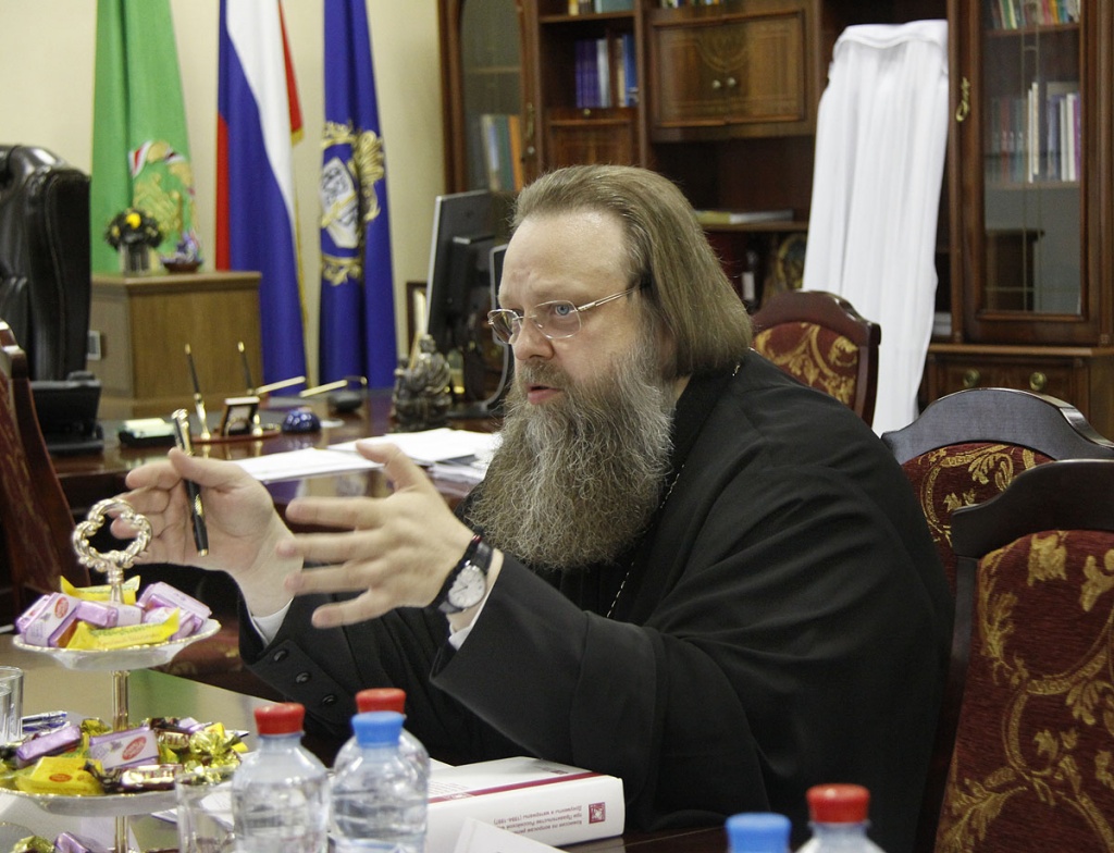Митрополит Ростовский Меркурий: В новых учебниках истории должно присутствовать нравственное измерениеОб этом председатель Синодального отдела религиозного образования и катехизации заявил на встрече, посвященной обсуждению проекта Концепции учебно-методического комплекта по Отечественной истории. Встреча прошла в Синодальном отделе 6 июня 2014 года. Работа над созданием Концепции учебно-методического комплекта по Отечественной истории была инициирована Президентом Российской Федерации в 2013 году. Святейший Патриарх Московский и всея Руси Кирилл благословил экспертов Русской Православной Церкви принять участие в разработке этого важного документа, поскольку невозможно не учитывать церковный взгляд на отечественную историю. Осуществлять координацию этого процесса и взаимодействие со светскими экспертами Святейший Патриарх Кирилл благословил председателя Синодального отдела религиозного образования и катехизации митрополита Ростовского и Новочеркасского Меркурия. Первоначальная версия, которая оказалась у церковных экспертов, вызвала массу вопросов. Основные их замечания были представлены разработчикам Концепции. Как отметил председатель Синодального отдела по взаимоотношениям Церкви и общества протоиерей Всеволод Чаплин, в предложенной Концепции религиозная составляющая жизни страны не нашла отражение адекватно объему. «Некоторые имена, которые бесспорно достойны учебника истории, не представлены. Это имена ключевых русских святых, о которых, по крайней мере, две-три строчки сказать было бы можно», — отметил он. Замечания церковных экспертов касались не только обозначенного отцом Всеволодом вопроса, но и сложных аспектов отечественной истории, таких как раскол внутри Церкви в XVII веке, деятельность императора Петра I, революция 1917 года, оценка событий Новейшей истории. Протоиерей Всеволод Чаплин добавил, что есть вопросы, на которые давно найдены ответы, но которые кем-то продолжают считаться спорными. «Например, что оценка возникновения старообрядчества — это, мол, какая-то страшная проблема. Или что нет адекватных определений, касающихся советской политики в отношении религии. Это разговоры, которые давно являются пройденным этапом», — заявил священник. Касаясь проблематики Новейшей истории, заместитель начальника Управления Аппарата Президента Российской Федерации по общественным проектам Ольга Васильева отметила, что не стоит повторять ошибку большевиков, которые все, что было в предшествовавшие периоды, оценивали лишь в негативном ключе. «Если мы сейчас пойдем по их пути и исключительно в жестких красках начнем описывать подрастающему поколению все то, что было до 1991 года в СССР, мы встанем на те же самые грабли, что и в 1917 году, когда история как наука перестала существовать, и только в 1934 году ее преподавание было возобновлено», — сказала Васильева. В ходе состоявшейся дискуссии председатель Синодального отдела религиозного образования и катехизации митрополит Ростовский и Новочеркасский Меркурий отметил важность того, чтобы в подходах к формированию Концепции учебно-методического комплекта по Отечественной истории был услышан голос Святейшего Патриарха Кирилла, который говорит о необходимости руководствоваться не своими политическими пристрастиями, не своим личным отноше