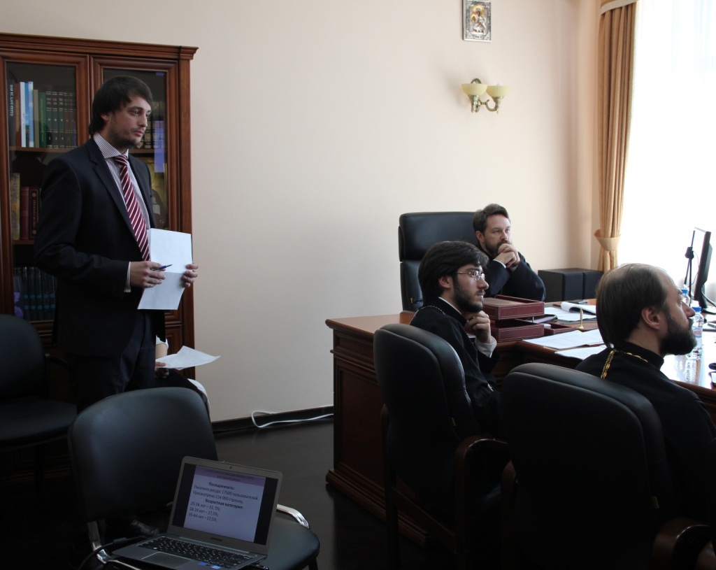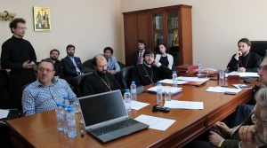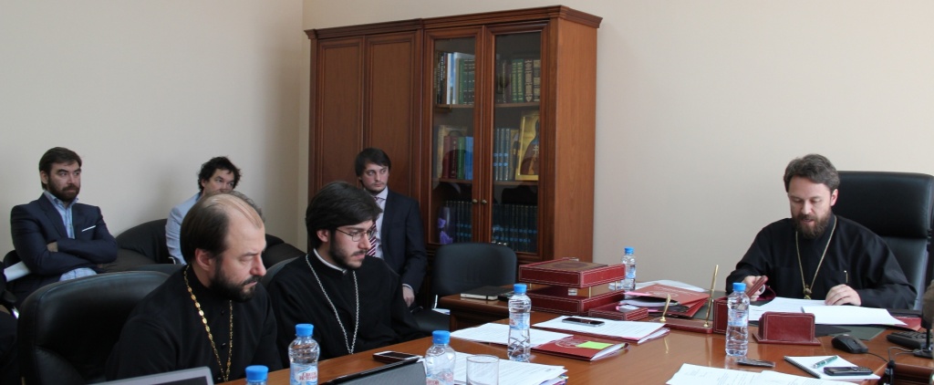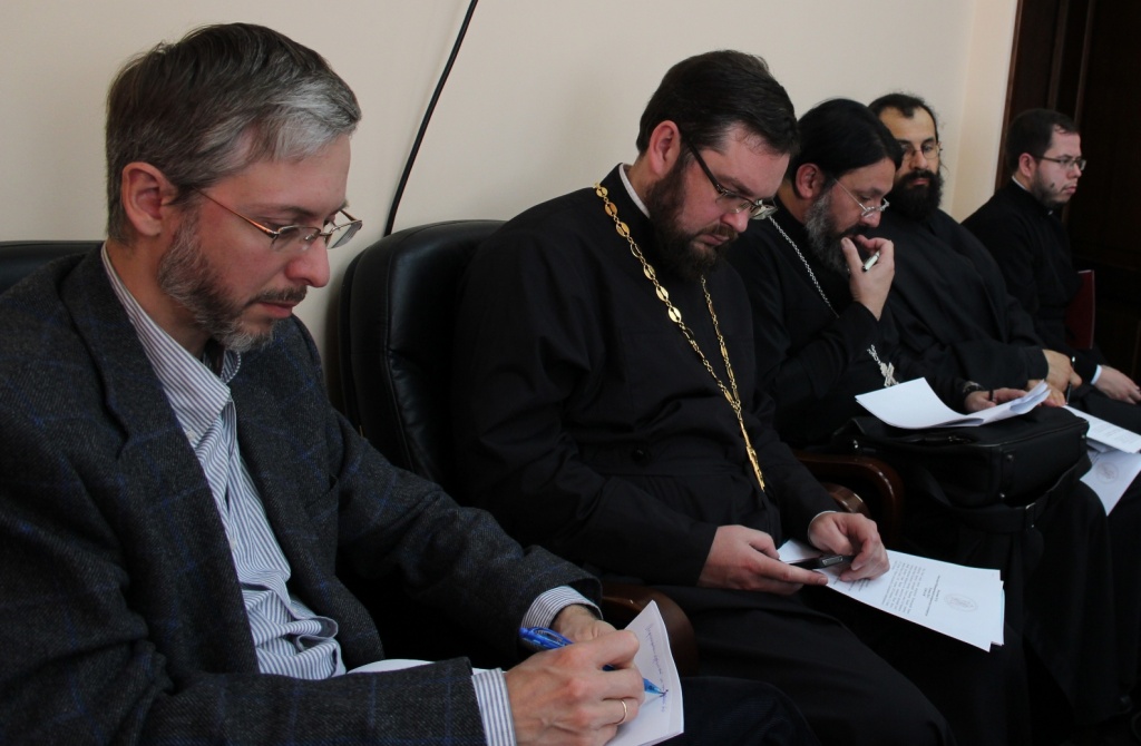 Состоялось заседание Ученого совета Общецерковной аспирантуры20 июня 2014 года в административном корпусе Общецерковной аспирантуры и докторантуры имени святых Кирилла и Мефодия (ОЦАД) на Черниговском Патриаршем подворье в Москве состоялось заседание Ученого совета, которое возглавил ректор Общецерковной аспирантуры, председатель Отдела внешних церковных связей Московского Патриархата митрополит Волоколамский Иларион. В заседании участвовали члены Ученого совета: проректор по научной работе протоиерей Владимир Шмалий, проректор по учебной работе иеромонах Иоанн (Копейкин), секретарь совета А.И. Мраморнов, заведующие кафедрами: библеистики — М.Г. Селезнев, богословия — А.Р. Фокин, древних и новых языков — иеромонах Иоанн (Гуайта), общественных наук — С.Л. Кравец, церковно-практических наук — иерей Михаил Желтов, церковных искусств и археологии — протоиерей Стефан Ванеян, философии — В.Н. Катасонов, заместитель заведующего кафедрой внешних церковных связей протоиерей Сергий Звонарев. К участию в первой части заседания были приглашены главы подразделений и сотрудники ОЦАД: помощник ректора по финансовым вопросам, исполнительный директор Фонда святителя Григория Богослова Л.М. Севастьянов, глава административно-хозяйственного отдела М.А. Титов, заведующий учебно-методическим отделом диакон Алексий Сафонов, глава информационной службы И.А. Парфенов, заведующая канцелярией А.А. Лямина, референт по международному сотрудничеству К.А. Гандур, помощник секретаря комиссии по регулированию студенческого обмена диакон Сергий Черкасов, специалист по компьютерному оборудованию А.Б. Глозман. Во вступительном слове владыка ректор представил статистику, сообщив, что в 2013/2014 учебном году успешно защитили докторские диссертации 4 человека, один — кандидатскую, 7 магистрантов готовятся защищать свои диссертации осенью. Митрополит Иларион проинформировал о произведенной в январе 2014 года реструктуризации администрации аспирантуры, в результате которой созданы новые подразделения: канцелярия, учебно-методический, международный, информационный, административно-хозяйственный отделы и IT-отдел. Далее митрополит Иларион попросил руководителей подразделений выступить перед членами Ученого совета с презентацией их структуры, деятельности, а также c отчетом о проделанной работе за истекший триместр. Во второй части заседания члены Ученого совета подвели итоги деятельности кафедр. Были рассмотрены вопросы, касающиеся магистерской, аспирантской и докторской программ, курсов повышения квалификации и проектной деятельности кафедр. Митрополит Иларион озвучил ряд поручений проректорам и заведующим кафедр.