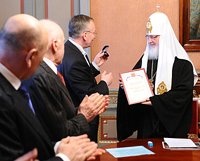 Святейшему Патриарху Кириллу вручена Национальная премия «Человек года» за 2009 год27 февраля в рабочей Патриаршей резиденции в Чистом переулке Святейшему Патриарху Московскому и всея Руси Кириллу была вручена Национальная премия «Человек года» за 2009 год, сообщает Пресс-служба Патриарха Московского и всея Руси. В церемонии участвовали председатель совета директоров Русского биографического института С.Ю. Рыбас, генеральный директор Русского биографического института А.И. Агеев, члены экспертного совета премии В.В. Федоров, В.Г. Лунев, А.Л. Рыбас. Среди участников торжественного акта также были лауреаты премии 2009 года: директор Научного центра сердечно-сосудистой хирургии им. А.Н. Бакулева академик Л.А. Бокерия, кинорежиссер В.В. Бортко, генеральный директор шахты «Распадская» Г.И. Козовой, генеральный директор КБ «Алмаз-Антей» И.Р. Ашурбейли. Приветствуя Его Святейшество, председатель совета директоров Русского биографического института С.Ю. Рыбас поздравил Предстоятеля Русской Православной Церкви с днем памяти его небесного покровителя — святого равноапостольного Кирилла, учителя Словенского. Как напомнил С.Ю. Рыбас, премия, учрежденная Русским биографическим институтом, присуждается в этом году уже в семнадцатый раз. В 1993 году ее первым лауреатом стал будущий Святейший Патриарх Кирилл, тогда митрополит Смоленский и Калининградский, удостоенный премии за миротворческую деятельность по преодолению гражданского противостояния в российском обществе. «Очень тревожные были времена, и Ваша роль в умиротворении конфликта была огромной, — сказал, обращаясь к Его Святейшеству, председатель совета директоров Русского биографического института. — С тех пор мы неоднократно отмечали Вашу подвижническую деятельность. Хотелось бы отметить, что Вы всегда внимательно относились к нашим публичным мероприятиям и принимали в них активное участие». «Первый год Вашего Патриаршего служения был очень плодотворным. Вы стали духовным лидером страны. Общество ощутило долгожданный волевой импульс Церкви», — заключил С.Ю. Рыбас и вручил Его Святейшеству диплом «Человек года» и Серебряный крест Русского биографического института. Как гласит запись в дипломе, «Святейший Патриарх Московский и всея Руси Кирилл за выдающийся вклад в духовное возрождение России в номинации "Религия" объявляется "Человеком года — 2009"». Предстоятель Русской Православной Церкви обратился к участникам церемонии с ответным словом. Святейший Патриарх Кирилл, в частности, отметил, что вручение диплома свидетельствует о «ясном понимании того, что Русская Церковь сегодня занимает важное место в жизни нашего общества». Выразив серьезную озабоченность кризисным явлениями в жизни людей, особенно молодежи, Святейший Владыка подчеркнул, что «борьба за человека, за его нравственный и духовный мир, является величайшим приоритетом». «Церковь по своей природе не может не служить этому великому делу», — сказал Святейший Патриарх Кирилл. При этом, по словам Его Святейшества, решение проблемы зависит от совместных усилий Церкви и всего российского общества, и, «в первую очередь, Церковь должна взаимодействовать с мыслящими, одаренными, совестливыми людьми вне зависимости от их общественного положения», в том числе с представителями творческой интеллигенции — «с тем