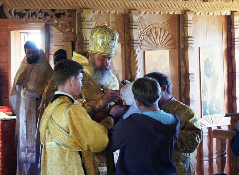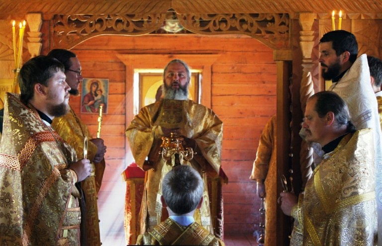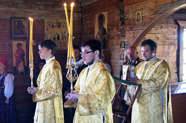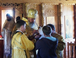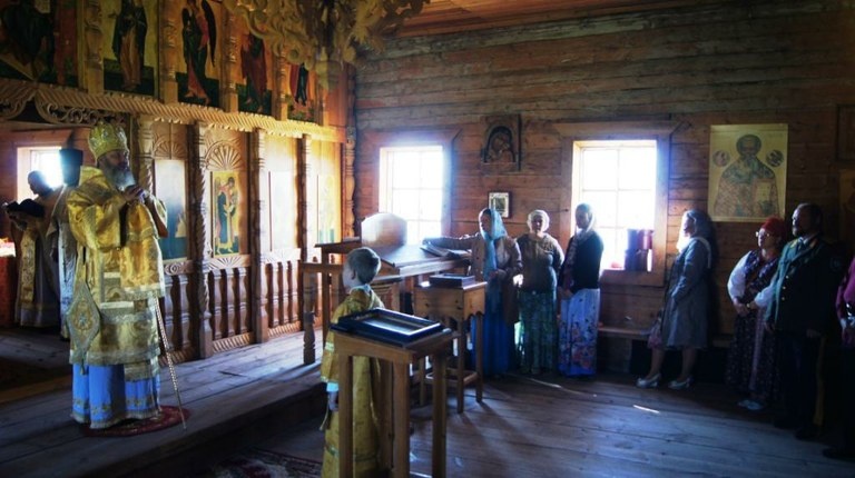 Сметая музейную пыль. В музейном объекте вновь прошла службаВ храме музея «Ангарская деревня» состоялась первая архиерейская служба, сообщает Братская епархия. Этот экспонат архитектурно-этнографического комплекса «Ангарская деревня» всегда привлекал к себе повышенное внимание: к храму Архангела Михаила любят приезжать молодожены; перекрестясь сюда заходят даже неверующие посетители. Сразу и не поймешь, чем так манит это место. Суровая сибирская архитектура (профессионалы на своем языке описывают этот храм как «четверик под скатной крышей с небольшой главкой, посаженной на восьмигранный глухой высокий барабан»), внутри тоже без излишеств… Как и остальные экспонаты музея под открытым небом, Михайло-Архангельская церковь некогда была действующей. В «Ангарскую деревню» она попала с берегов Нижней Тунгуски из села Нижне-Карелино Киренгского района в начале 1980-ых годов. С тех пор ее не раз реставрировали, в последний раз – три года назад – восстанавливали иконостас, царские врата и звонницу. И к нынешнему моменту построенный почти полтора века назад храм весьма хорошо сохранился. Доподлинно не известно, когда здесь состоялось последнее богослужение. В музей церковь попала уже без престола – самой главной части алтаря, без которой невозможно совершать ни одно таинство. С инициативой вернуть храм к настоящей духовной жизни Братская епархия выступила около года назад и получила поддержку музейных работников. Тогда же был восстановлен престол. Прошлым летом в храме прошло несколько полноценных служб для воспитанников епархиального православно-ориентированного лагеря «Одигитрия», расположенного неподалеку от музея. Зимой неотапливаемый храм пустовал. С приходом тепла богослужения возобновились. Первая в этом году служба была связана с проходившим на базе «Ангарской деревни» и «Одигитрии» фестивалем казачьей культуры. 6 июля 2014г. литургию в Михайло-Архангельском храме впервые возглавил епископ Братский и Усть-Илимский Максимилиан. В ближайшее время Владыка намерен освятить храм архиерейским чином. Предполагается, что в дальнейшем здесь будут венчать молодоженов, а праздничные народные гулянья в «Ангарской деревне» (к примеру, на Троицу), будут открываться настоящими церковными службами.