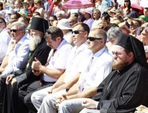 Далее последовало выступление представителя Украинской Православной Церкви, настоятеля храма преп. Сергия Радонежского в г. Днепродзержинске Днепропетровской области архимандрита Арсения (Бочкаря). О. Арсений посвятил свое выступление памяти Блаженнейшего митрополита Киевского и всея Украины Владимира. Он рассказал о жизненном подвиге служения Богу, Церкви и народу Божиему покойного Предстоятеля Украинской Православной Церкви.