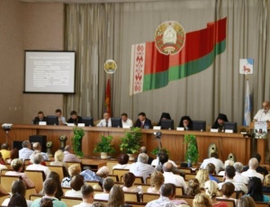 Далее участников и гостей конференции поприветствовал председатель Мстиславского районного исполкома Василий Владимирович Витюнов, который рассказал об историческом значении г. Мстиславль.