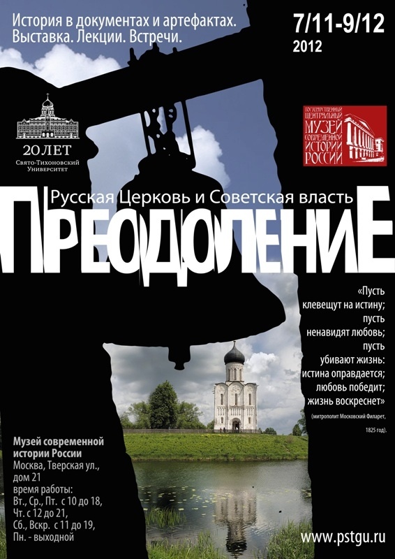 Выставку памяти новомучеников и исповедников Российских, организованную Свято-Тихоновским университетом зимой 2012/13 годов в Музее современной истории России, за два с половиной месяца работы посетили более 7000 человек. Их интерес был вызван уникальными экспонатами, собранными в разных уголках Советского Союза: личными вещами святых, различными документами, отражающими как богоборческую политику власти, так и реакцию на нее Церкви, предметами подпольной богослужебной жизни в лагерях. Интерактивное оформление выставки открыло посетителям итоги 20 лет серьезных научных исследований, выполненных учеными Свято-Тихоновского университета в области новейшей церковной истории, но главное, дало возможность почувствовать значение подвига новомучеников для современного человека. Запуск виртуального тура по выставке «Преодоление» приурочен к грядущему окончанию восстановительных работ в Московском Епархиальном доме в Лиховом переулке, знаковом месте для истории Русской Православной Церкви XX века. Именно здесь на Поместном Соборе в 1917 году было восстановлено патриаршество, сотни делегатов Собора впоследствии пострадали за Христа, около пятидесяти были канонизированы в составе Собора новомучеников и исповедников Российских. В наступающем году Московский Епархиальный дом, возвращенный Церкви и переданный Свято-Тихоновскому университету в руинированном состоянии, станет, наконец, благословением и содействием Святейшего Патриарха Московского и всея Руси Кирилла обновленным и украшенным главным корпусом Свято-Тихоновского университета, и, будет в соответствии со своим предназначением служить делу народного просвещения.
