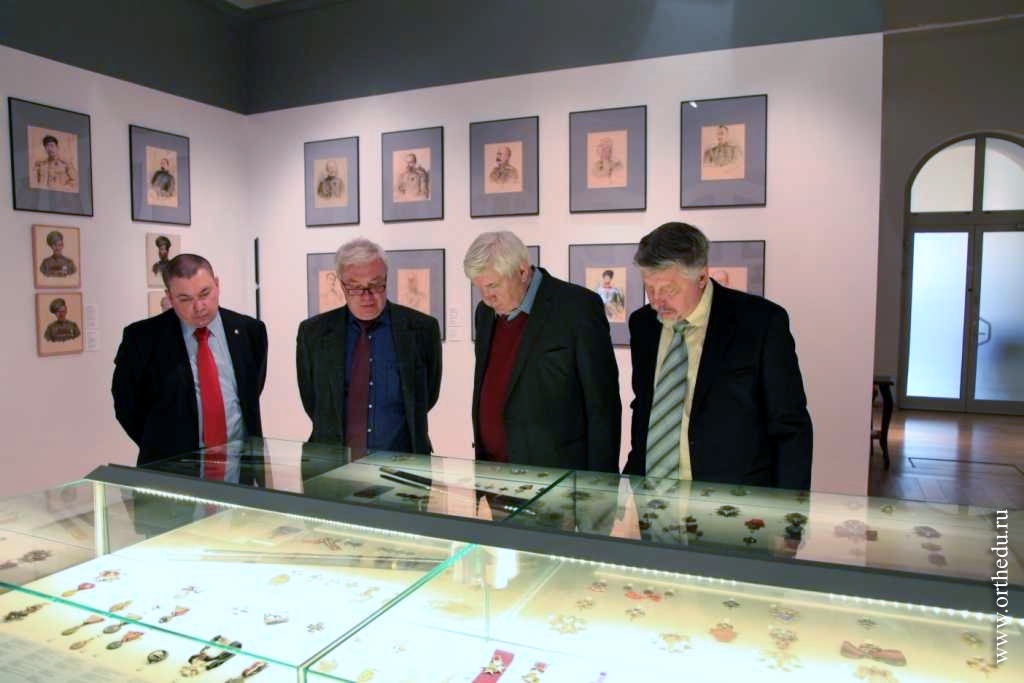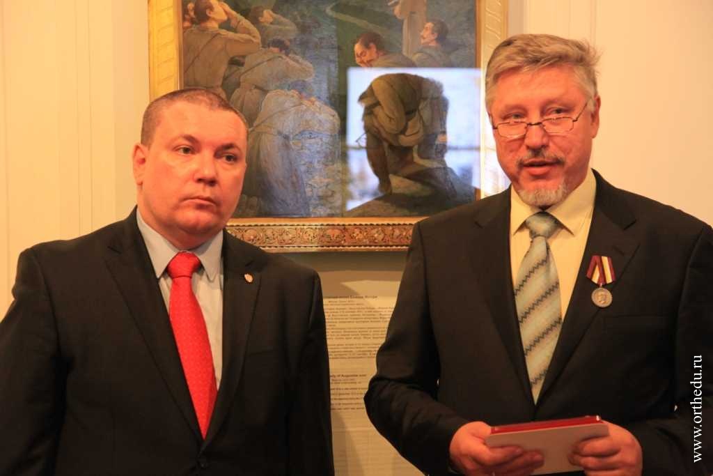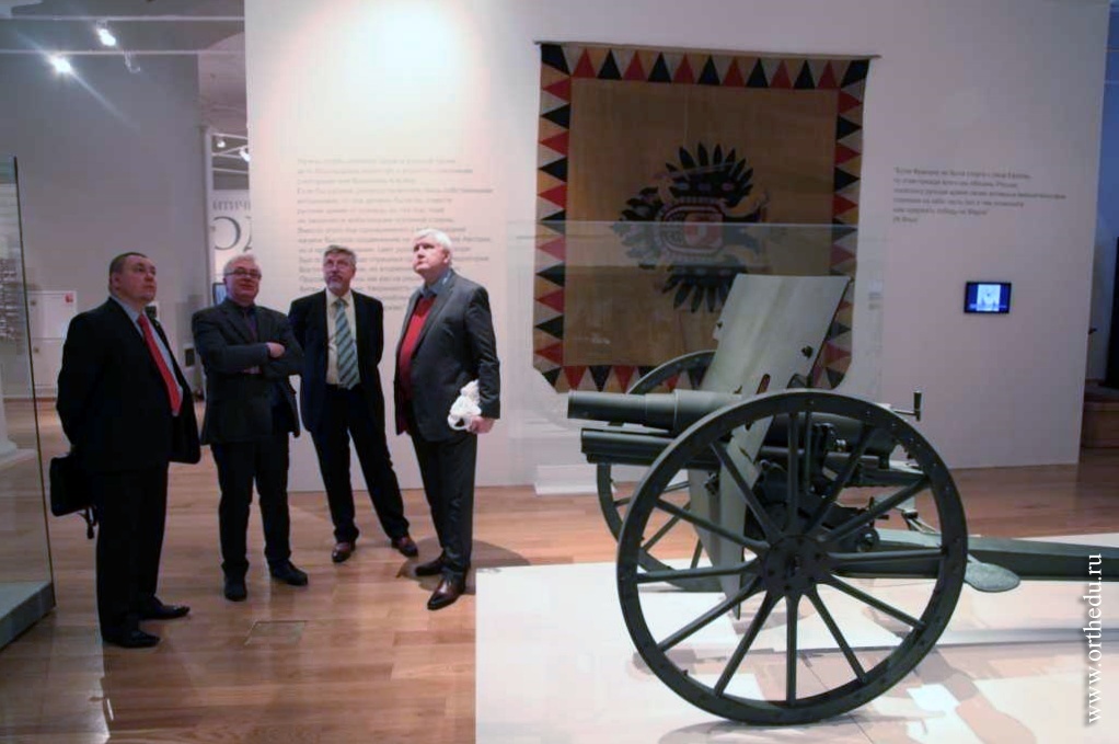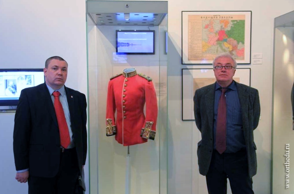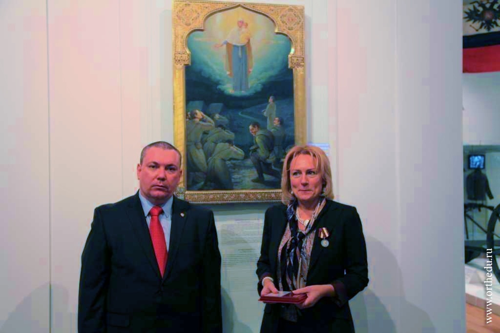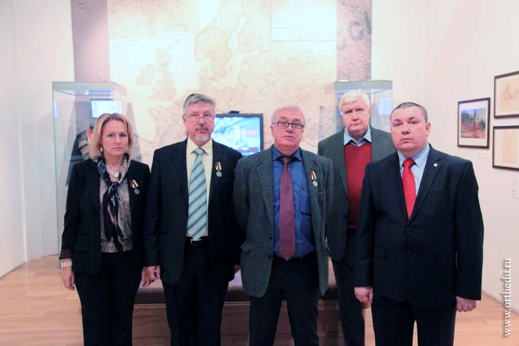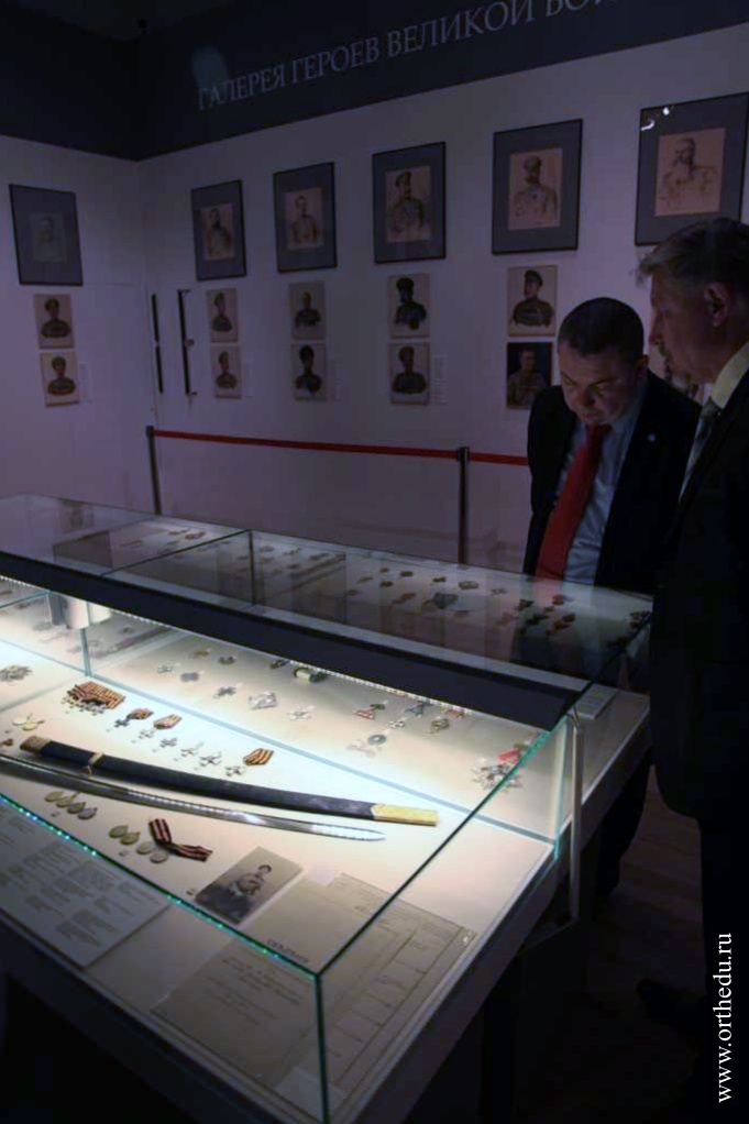 Директор Государственного Исторического Музея Алексей Константинович Левыкин награжден медалью "В память Великой войны"7 октября 2014 г. делегация Войсковой Православной Миссии посетила Государственный Исторический Музей, расположенный в самом сердце столицы России - Красной площади. Директор ГИМа Алексей Константинович Левыкин провел экскурсию по экспозиции "Первая мировая. Последняя битва Российской Империи", которая открыта в стенах главного музея страны. Среди экспонатов - икона Августовской Божией Матери, написанная в 1915 г., казачья черкеска и мундир фельдмаршала Великобритании, принадлежащие Государю Императору Николая Второму, солдатская шинель Наследника Цесаревича Алексея, награды, оружие и униформа воюющих сторон Первой мировой. Данная награда была также вручена архитекторам Игорю Федоровичу Силину и Наталье Александровне Силиной.