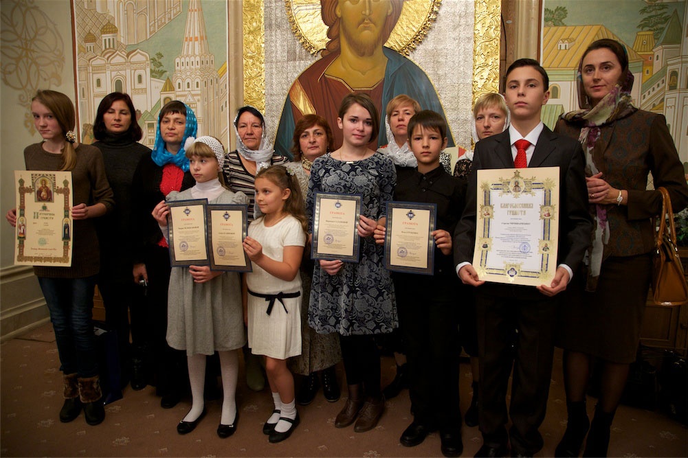 Победители — 43 человека — дети в возрасте от 8 до 17 лет из разных уголков страны, приславшие свои работы в номинациях «Православная икона», «Роспись по фарфору», «Литература» и «Основная тематика». Оценивая разнообразие присланных работ, митрополит Меркурий поделился с детьми своими мыслями об искусстве. По его мнению, искусство — это прежде всего сотворчество Богу, а категории, в которых человек воспринимает то или иное произведение, принадлежат вечности. «Однажды, беседуя с известным музыкантом Юрием Шевчуком, мы обсуждали эту тему, и я ему сказал: мне кажется, настоящее искусство — это то, в котором прославляется Бог. Если этого не происходит, то такое искусство нельзя назвать искусством. Это что-то временное. Это может быть хобби, но это не искусство», — рассказал иерарх. Работы, победившие на конкурсе, по мнению митрополита Меркурия, это подлинное искусство, «потому что маленький человек, растущий, только встающий на ноги, только начинающий понимать и сознавать жизнь, видит Бога — в окружающем его мире, в других людях; он пытается почувствовать вечное, великое, славное, чистое, и не только почувствовать самому, но и дать возможность этого ощущения, этого мировосприятия другим людям». Иерарх отметил, что жюри было сложно оценивать работы. «Нам пришлось посмотреть на мир глазами детей, а взрослому человеку это сделать намного сложнее, — сказал митрополит Меркурий. — Но все-таки мы попытались это сделать, и я хотел бы поблагодарить всех, кто участвовал в конкурсе, — продолжил председатель Синодального отдела, — прежде всего детей, которые сделали этот конкурс возможным, которые приложили массу сил и дарований; а также педагогов и родителей, потому что без них, без мудрого советника, очень сложно было бы это сделать». Митрополит Меркурий также выразил благодарность организаторам детского конкурса и поздравил всех с наступающим днем памяти преподобного Сергия Радонежского. Затем архиерей вместе с членом жюри конкурса, председателем Наблюдательного совета Императорского фарфорового завода Г. Цветковой вручил Патриаршие награды детям, занявшим первые места. Специальной премии митрополита была удостоена работа Сергея Чичиварихина (13 лет) «Тихие чудеса». Ответственный секретарь конкурса «За нравственный подвиг учителя», заведующий сектором образовательных конференций, чтений и конкурсов Синодального отдела религиозного образования монах Трифон (Умалатов) и председатель правления Фонда просвещения «МЕТА» В. Сигаева вручили победителям конкурса грамоты Синодального отдела. Специально к этому дню организаторы подготовили и издали альбом работ победителей конкурса, который им был вручен. После торжественной церемонии награждения для ее участников была проведена экскурсия по Храму Христа Спасителя.