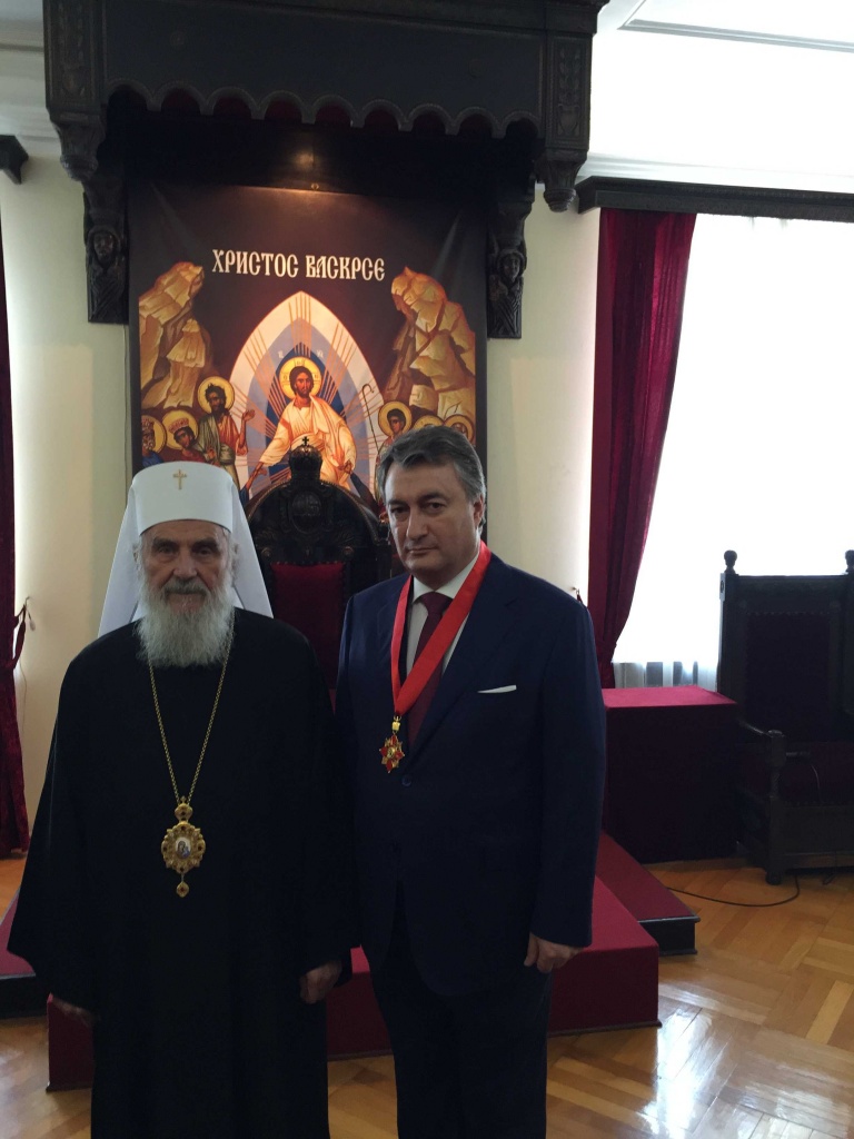 Высокой православной награды Гела Валиев удостоен за деятельную любовь к Сербской Православной Церкви и Сербскому народу.