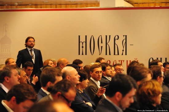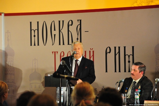 Москва — Третий РимИсторическая конференция (+ВИДЕО +ФОТО)11 ноября 2014 года в рамках проходящей в московском «Манеже» интерактивной выставки-форума «Православная Русь. Моя история. Рюриковичи» состоялась историческая конференция «Москва — Третий Рим». В ходе мероприятия обсуждались исторические предпосылки возникновения идеи Московского царства как преемника Византии и концепции Третьего Рима в Российской Империи, а также современные научные подходы к изучению данной проблематики. <!-- more --> В конференции приняли участие ведущие российские ученые, общественные деятели, политики, представители духовенства: архимандрит Тихон (Шевкунов), ответственный секретарь Патриаршего совета по культуре, Константин Валерьевич Малофеев, учредитель Фонда Святителя Василия Великого, Наталия Алексеевна Нарочницкая, д.и.н, президент Фонда Исторической Перспективы, Леонид Петрович Решетников, к.и.н., директор Российского Института Стратегических Исследований, Сергей Павлович Карпов, д.и.н., академик РАН, декан исторического факультета МГУ имени М.В. Ломоносова, Дмитрий Михайлович Володихин, д.и.н., профессор исторического факультета МГУ имени М.В. Ломоносова, писатель, Юрий Александрович Петров, д.и.н., директор Института российской истории РАН, Александр Гельевич Дугин, к.ф.н., д.п.н., философ, политолог, социолог.