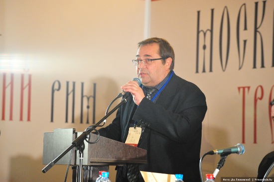 Александр Дугин, философ, политолог, социолог, в докладе «Третий Рим как национальная идея» обратил внимание на религиозное значение смысла империи, связав его с учением о судьбе земной Церкви: – Император – фигура эсхатологическая с самого начала, препятствующая приходу антихриста. Есть империя – нет антихриста, нет империи – есть антихрист. Империя – это не просто земная организация жизни, это – священная миссия, это часть фундаментального экклезиологического периода. А. Дугин подчеркнул: – Полноценными наследниками империи мы стали как раз при кульминации династии Рюриковичей, при Иване Грозном. В этом мы видим исполнение судьбы русского народа и русской государственности. Мы сподобились в XVI веке стать империей. Помазание Ивана IV на царство и проведение Стоглавого собора в 1551 году – это, конечно, было вступлением в права империи. Империя – это наш религиозный православный русский дом. Как мы можем двигаться в этом направлении для восстановления полноты христианского бытия? Нам дана только одна линия. Только одна линия действительно соединяет нас с изначальным христианством – это аскетическая традиция, традиция старчества, традиция монашества. И неслучайно именно монашество было той средой, которая напомнила о необходимости трансляции идеи, переноса империи на Москву – Третий Рим. Христиане многие века могут жить и в неправильном политическом государстве, как первые христиане жили в языческом Риме. Но живя в неправильной политической системе, противной христианскому принципу, христиане никогда не должны говорить этому «да». Они не должны признавать глубинную религиозную легитимность любого политического устройства, кроме имперского. Не империалистического, не националистического, а именно духовно-имперского. Только империя – политическая родина христианина. И сегодня очень важно отозвать легитимность от либеральных, демократических, светских и даже националистических политических моделей. Они могут быть, они есть сейчас. Мы можем быть и оставаться христианами внутри этих систем, но они – аномалия. К чему они ведут, показывает нам Богом проклятый Запад, который, отпав от этой имперской онтологии много веков назад, дошел до абсолютных извращений, до Кончиты Вурст, до легализации всех пороков. И это путь всех тех, кто вступил на тернистую дорогу отрицания империи. Это кара за потерю империи, за ее искажение. Поэтому, если мы хотим отстаивать наши русские православные ценности, мы должны отозвать доверие легитимности тому, что не является имперской политикой. Да, может быть, мы ее не заслуживаем, может быть, мы должны вымолить царя, может быть, заслужить его, но это наша цель. Одно дело, когда мы говорим демократии «да» и на самом деле признаем ее легитимность, как и либерализма, западничества, а другое дело, даже не будучи в силах изменить это и не будучи в силах построить империю, мы должны сказать этому «нет». И настаивать на своем собственном политическом, религиозном, духовном, историческом идеале, которым является в первую очередь наша идея Москвы – Третьего Рима.