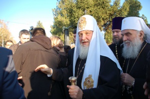 В завершение своего слова Святейший Патриарх Ириней вручил Святейшему Патриарху Кириллу высшую награду Сербской Православной Церкви орден святителя Саввы I степени, а также икону Божией Матери, святые панагии и крест.